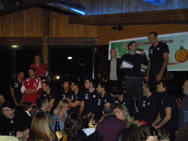 E’ ripreso nel pomeriggio di ieri il lavoro in palestra della Gherardi Cartoedit Tratos Svi. Dopo i cinque giorni di riposo concessi dal tecnico tifernate Andrea Radici in occasione della sosta, la squadra si è ritrovata per un primo allenamento al Palasport a cui ha fatto seguito la cena degli auguri. In un noto ristorante altotiberino, infatti, si sono riunite tutte le squadre della società del presidente Arveno Joan, dai gruppi del minivolley fino alla serie A2. Un grande abbraccio collettivo (c’erano anche i genitori di bambini e ragazzi) per la formazione guidata da Radici, che è la punta di diamante di un movimento che consta di circa 250 iscritti, in una serata che ha visto anche la presenza delle autorità, tra le quali il presidente della Fipav Umbria, Giuseppe Lomurno, l’assessore allo sport del comune di Città di Castello, Stefano Nardoni, gli sponsors, il presidente della Cassa di Risparmio di Città di Castello, Sergio Bistoni, il consigliere regionale Andrea Lignani Marchesani. Era presente anche l’allenatore della Rpa Perugia, Andrea Sartoretti, in veste di genitore dato che il figlio maggiore, Luca, milita nella serie C e nell’Under 18 della Gherardi Cartoedit Tratos Svi. A fare gli onori di casa ci ha pensato il presidente Joan che ha più volte ringraziato tutti per la presenza e per l’attaccamento a questa squadra e questa società. Ha fatto la sua comparsa anche Babbo Natale per portare doni ai più piccoli. Dopo la giusta parentesi di festa i ragazzi della Serie A2 si stanno concentrando sulla difficile partita interna di domenica prossimo contro la Isernia, formazione capace di strapazzare Bologna nello scorso turno di campionato.