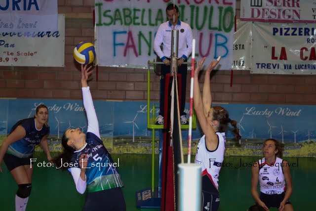 Una bella Lucky Wind Trevi ha la meglio sull’Alfieri Cagliari della ex Silvia Tosti. Due set perfetti delle trevane il terzo in cui l’orgoglio delle sarde ha rimesso in discussione il match e un quarto parziale di nuovo devastante hanno consegnato tre punti preziosi per la classifica delle ragazze del direttore generale Francesco Pietrolati. I quindici muri vincenti e le otto battute punto hanno facilitato non poco il compito delle umbre che hanno dimostrato grande coesione e abilità tattica. Tutto il sestetto trevano ha risposto al meglio. Finistauri e Di Iulio in battuta, Pascucci e Zannella a muro, Pietrolati in palleggio, gli attacchi della Bruni e il lavoro in seconda linea della Garbini e della Alikaj hanno creato i presupposti per la quarta vittoria stagionale della Lucky Wind. Tra le sarde buona la prova delle due umbre Valentina Ciacca e Silvia Tosti quest’ultima più volte acclamata dai suoi ex tifosi trevani. Si parte con entrambe le squadre al completo. Subito protagonista Finistauri in primo tempo e Pietrolati lucida in regia ma efficace anche in attacco. Dimitrova a muro cerca di arginare la furia dell’attacco trevano che è decisivo per la conquista del primo parziale. Secondo set in fotocopia. E’ il muro della Pascucci a dare la spinta iniziale al gioco delle trevane. Malerba si propone bene in attacco ma la battuta della Di Iulio e gli attacchi di Bruni e Zannella spengono le velleità della squadra ospite con le umbre che si portano sul 2 a 0. Il terzo parziale è quello più combattuto. Il Cagliari parte bene con la coppia Ciacca-Tosti che comincia a macinare punti in attacco. La Lucky Wind insegue ed aggancia l’Alfieri sul finale di set che, giocato palla su palla premia la caparbietà della squadra di mister Langiu. Partita di nuovo aperta ma il quarto set è una marcia trionfale delle ragazze del direttore sportivo Benedetti che non sbagliano un colpo. Garbini non fa cadere nulla mentre è prezioso l’apporto della Alikaj e della Tortolini che rispondono bene alla chiamata della panchina trevana. Pascucci e Bruni in attacco non perdonano fino ad arrivare all’ace finale della micidiale battuta della Finistauri.