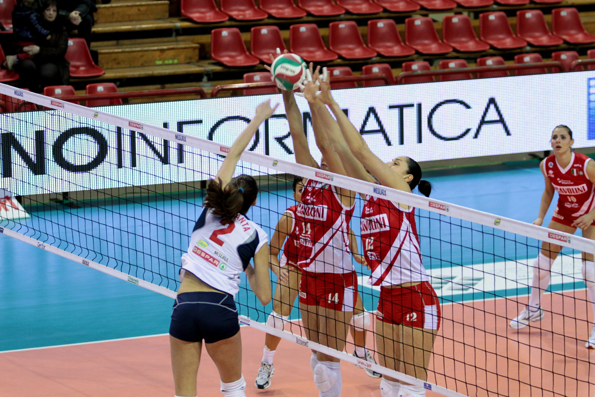 Ad Arcangeli e compagne non riesce il colpaccio: avanti 2-1 non approfittano fino in fondo del fattore campo e cedono al tie break; ma aver portato le più quotate avversarie fino al quinto set lascia ancora aperto un buono spiraglio per la partita di ritorno mercoledì prossimo a Pesaro: la Misura Perugia il pass per la Final Four dovrà infatti guadagnarselo con una vittoria, ma alle perugine sarebbe “sufficiente” imporsi per 3-0 o 3-1 per poter staccare il biglietto per Rimini; mentre nel caso di tie break in proprio favore, sarebbe necessario disputare il Golden Set per decretare la squadra che passa il turno. Eppure la serata era partita nel migliore dei modi, con la Misura Perugia che dopo aver subito la partenza fulminante delle colibrì (0-4), era riuscita a rimanere a contatto, finendo per imporsi 27-25 dopo aver anche annullato un set point alle avversarie. Nel secondo set le grifette si erano ritrovate a condurre 5-10, ma poi avevano dilapidato il vantaggio e avevano dovuto cedere sotto le martellate di Costagrande. Alla fine del terzo set, con le perugine che erano state in grado di assorbire la delusione e reagire, l’affermazione sembrava a portata di mano… invece il buio, con la Scavolini che diventava padrona del campo e andava a vincere agevolmente gli ultimi due frangenti. Negli altri campi ha vita facile solamente Jesi, che espugna il Pala Yamamay in soli 3 set. Bergamo e Villa Cortese hanno invece ragione di Urbino e Novara per 3-1, sempre in trasferta. Domenica sarà di nuovo in scena Perugia-Pesaro, ma in Campionato, per la terza giornata di ritorno. Dopo appena tre giorni (mercoledì 3 febbraio) ecco il ritorno di Coppa Italia, questa volta a casa della Scavolini. Il Primo Allenatore Emanuele Sbano: “Dispiace perchè per 3 set si è giocato ad un buon livello e abbiamo dimostrato di potercela vedere alla pari contro le campionesse d’Italia, prime in classifica. Poi Pesaro ha iniziato a difendere benissimo e quando le cose non si sono messe bene noi non siamo stati più in grado di reagire: abbiamo chiuso il quarto set senza opporre resistenza, partendo negativamente anche nel quinto, e a quel punto non c’è stato più nulla da fare. Ma ora non c’è tempo di rimuginare: dovremo far tesoro delle cose buone fatte stasera per affrontare al meglio l’impegno di domenica (sempre contro Pesaro in casa), e poi cercare di andare a ribaltare il risultato a casa loro fra una settimana”. Il Capitano biancorosso, il libero Chiara Arcangeli: “Peccato perchè fino al quarto set è stata una bella partita e ce la siamo giocata punto a punto. Poi a un certo punto abbiamo tirato i remi in barca e spero almeno che questa serata ci servirà per affrontare al meglio le prossime due gare”. Il Team Manager Massimo Menghini: “La delusione è grande per essersi lasciati sfuggire il secondo set dopo essere stati in vantaggio di 5 lunghezze. Quando nel quarto e nel quinto set le avversarie si sono ritrovate nella stessa situazione non si sono lasciate distrarre e hanno chiuso il match. Ora non sarà facile andare a vincere a Pesaro, ma un passo per volta: domenica c’è il Campionato e sarà importante cercare di andare a punti”.