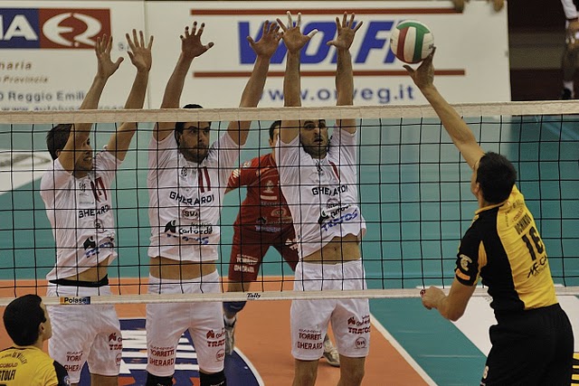 I giocatori che fecero l’impresa! Con una partita splendida, di livello elevatissimo in tutti i fondamentali la Gherardi Cartoedit Tratos Svi Città di Castello batte la corazzata MRoma Volley. Straordinari i ragazzi di Radici, tutti accomunati in un grande applauso a fine partita da un pubblico colorissimo. Subito una sorpresa nel sestetto MRoma: non c’è Viktor Yosifov in diagonale con Postiglioni, al centro gioca il giovane Mor, mentre nella formazione biancorossa torna, anche se solo a referto, il capitano Rosalba che questa settimana ha ricominciato ad allenarsi con la squadra. Dopo un ottimo inizio di Braga, tre attacchi vincenti, il primo break è firmato da un pallonetto di Portuondo (3-5), è poi un errore di Bortolozzo a regalare il 4-7 ai romani. E’ Ivan Zaytsev a mandare tutti al primo time out tecnico con un pallonetto che Di Manno intercetta ma non riesce a mettere a terra. Ancora Braga si rende protagonista della palla del 7-9, preludio ad un paio di scambi spettacolari con colpi e difese incredibili da una parte e dall’altra. Stoyanov schiaccia da posto quattro il pallone dell’11-12 ma al secondo time out tecnico arriva prima la MRoma grazie ad un attacco di Daniele Postiglioni. Roma riprende tre punti di vantaggio (15-18) con un diagonale di Zaytsev ma Di Manno sfonda il muro e porta i suoi sul 17-18; Mor tira fuori il primo tempo e la Gherardi Cartoedit Tratos Svi pareggia (19-19). Il muro vincente di Stoyanov su Poey dà il vantaggio ai tifernati (23-22), Di Manno trova il varco giusto per il 24-22; i padroni di casa non sfruttano due palle set per la bravura di Roma e Zaytsev regala il 24-25. Ma le sorprese non sono finite perché Poey schiaccia out e una battuta di Di Manno si inerpica sulla rete e cade per il 27-25 tifernate. La MRoma non ci sta e dà subito una scossa al secondo set (0-3) ancora con un super Zaytsev. Due schiacciate di Lipparini consentono ai tifernati di non far scappare ulteriormente i capitolini (5-8) e un errore di Portuondo illude la Gherardi Cartoedit Tratos Svi (8-9). Un muro di Poey su Di Manno e un ace di Zaytsev consentono agli ospiti di allungare di nuovo (8-12), ci pensa poi Postiglioni dal servizio a far arrivare la MRoma al secondo time out tecnico con un vantaggio di sei punti (10-16). Sembra fatta ma Marco Lipparini suona la carica in attacco, Braga mura Mor (13-17) e due aces di Di Manno fanno esplodere il Pala-Engels (17-18). E’ ancora il servizio di Postiglioni che consente a Roma di scavare un altro piccolo solco (20-23) e una chiamata dubbia di un’invasione biancorossa su un attacco fuori di Poey non perfeziona l’incredibile rimonta: un pallonetto di Zaytsev chiude la frazione (22-25). Il quarto set inizia con un punto a punto (3-3) poi il break è firmato da un paio di missili di Poey dal servizio (4-7). Città di Castello soffre ora la maggiore fisicità dei romani (8-11) ma ci pensa ancora Lipparini a riportare sotto i suoi (11-12) che pareggiano con un errore di Raidel Poey (12-12) e sorpassano con l’invasione di Yasser Portuondo (13-12). Giani toglie lo schiacciatore cubano ed inserisce Segnalini poi il secondo arbitro chiama dentro una palla terminata nettamente fuori di Poey (15-16), scatenando le proteste di pubblico e panchina biancorossa. Un fallo a rete di Bortolozzo fa scappare la MRoma (17-19) e Zaytsev mura Stoyanov dando il vantaggio alla MRoma (18-21). Città di Castello non ci sta ancora una volta e Braga, dopo una splendida difesa a un braccio di Lipparini su un bolide di Poey, pareggia di nuovo i conti (21-21). Poey guadagna la palla set ma sbaglia la battuta e Segnalini appoggia out la palla per il 25-24 e il bravissimo Lipparini mette a segno il block out del 2-1. Andrea Giani conferma in campo Segnalini al posto di Portuondo e, sul punteggio di 1-1, anche Paolucci va in panchina per lasciare il posto a Morelli. Il gioco di Roma non fluisce però correttamente, Poey sbaglia anche un attacco e un errore di formazione dei laziali mette i tifernati in condizione di andare al primo time out tecnico sul 4-8. Di Manno trova sguarnita la difesa romana ed appoggia a terra l’attacco del 9-4 ma un muro di Mor accorcia ancora le distanze (11-8). Gli ospiti sbagliano ancora, Di Manno dalla seconda linea sfonda la difesa ospite (14-9) e l’errore di Mor manda i tifernati sul 16-11. La stanchezza comincia a farsi sentire anche tra i biancorossi che si vedono rosicchiare un punto (19-15), poi Stoyanov sigla il 21-17 ma Mor stoppa Di Manno e riporta sotto la MRoma (21-19). Zaytsev commette uno dei rari errori (fallo di seconda linea) e Lipparini, con un sapiente block out, sigla il 24-21. Il punto che fa gridare di gioia un palazzetto intero lo sigla Enzo Di Manno.
