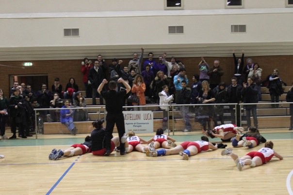 Era la gara più importante della stagione per le ragazze della Seconda Divisione targate Ergo Assicurazioni Perugia… tensione a mille e concentrazione al massimo… i tifosi hanno gremito gli spalti del palasport (oltre 100 persone) e supportato le grifette che hanno ripagato i propri sostenitori con una prestazione maiuscola portando a casa una grande vittoria contro il Polisportiva Pietralunghese. Ma veniamo alla cronaca della partita: coach Marconi deve ancora rinunciare all’opposto Monicchi e alla centrale Scorzoni e schiera in banda Scarafino-Fanfano al centro Sguilla-Bistocchi e la diagonale Marconi-Paolucci libero Anti. Le perugine partono subito con grande determinazione e con un’efficace battuta che mette in difficoltà il Pietralunga arriva il primo break (4-1); la pressione sulle ragazze ospiti si fa sentire e arrivano alcuni errori gratuiti in battuta ed in attacco, nonostante ciò il distacco rimane quasi immutato (10-6). Le ragazze di casa sospinte dal pubblico pare che non sentano l’emozione di giocare la partita che potrebbe decidere le sorti di un campionato intero e provano conclusioni e schemi come fossero in un’amichevole. L’allenatore avversario è costretto a spendere i due time out a sua disposizione già sul 15-10. Nessun effetto le ragazze di coach Enrico Marconi continuano con efficacia ad imporre il loro gioco e chiudono agevolmente il primo set (25-20). Secondo set più equilibrato con gli stessi sestetti in campo, le ospiti iniziano ad essere più precise in difesa e ciò permette una ricostruzione del gioco più efficace che viene finalizzata ottimamente con gli attacchi dal centro. Le ragazze di casa al contrario sono più fallose e meno incisive e dopo aver breakkato le avversarie prima sull’11-8 e poi sul 18-15 per ben due volte si fanno rimontare. E’ sempre dal centro che arrivano gli attacchi più pericolosi del Pietralunga che chiude il set e pareggia (23-25). Terzo e quarto set senza storia, le ragazze di casa ritornano quelle dell’inizio gara, concentrate, determinate ed efficaci, la battuta è meno fallosa, la ricezione viaggia su percentuali alte e difesa e attacco rispondono puntuali come un orologio. Le bande Fanfano e Scarafino sono le più servite sia in posto uno che in quattro e anche da seconda linea con un pipe giocata con successo molte volte durante la partita. La vittoria del terzo set arriva con un parziale inequivocabile (25-14) e i tifosi ancor più convinti delle gesta delle loro beniamine sospingono Sguilla e compagne a vincere nettamente la partita chiudendo il quarto set con un altro perentorio (25-19). Ancora un grande risultato per queste ragazze che mettono un altro fondamentale tassello sulla strada verso il primo posto finale, ora la Grifo Volley è a +5 dalle inseguitrici Fossato e Pietralunga. Raggiante il dirigente accompagnatore Massimo Leoci: “Sono più tranquillo dopo questa partita, ho rivisto gli occhi di tigre nelle ragazze che senza nessuna paura hanno finalizzato l’ottimo lavoro svolto in settimana dall’allenatore”.