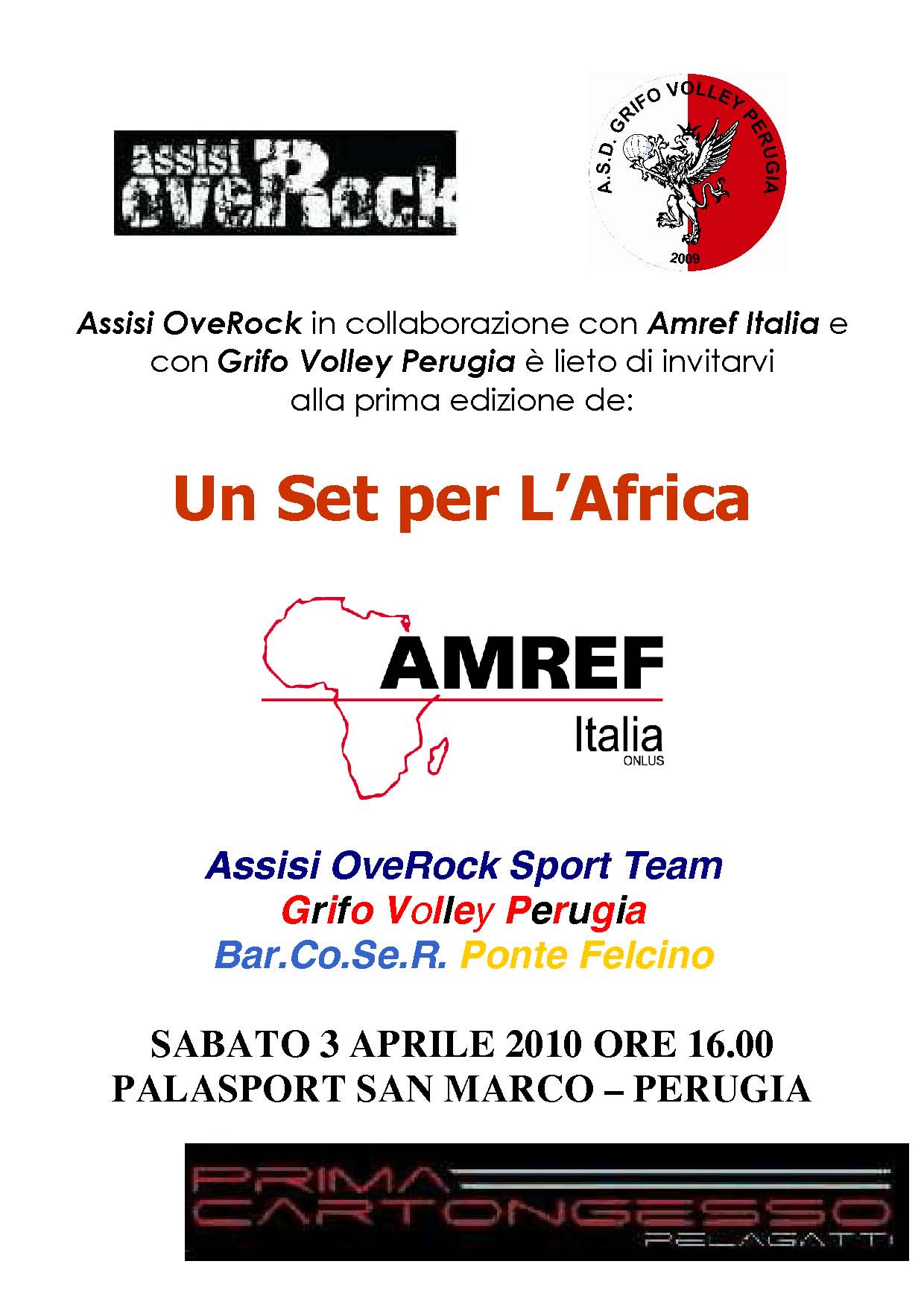 Nel week-end di pausa dei campionati regionali prima delle festività pasquali, la Grifo Volley Perugia insieme all’Assisi OveRock Sport Team organizza un nuovo torneo di solidarietà per aiutare Amref Italia; pertanto siamo lieti di invitare tutti i nostri amici e simpatizzanti alla prima edizione de “Un set per l’Africa”. La Grifo Volley Perugia con una sua rappresentativa mista affronterà in un triangolare la compagine targata Bar Coser Ponte Felcino ai vertici nel campionato di serie D femminile e l’Assisi OveRock Sport Team, rappresentativa mista composta da atleti di serie D e serie C. Lo scopo è quello di raccogliere fondi per il Progetto Idrico portato avanti da Amref Italia, a tal proposito all’interno del palazzetto di San Marco si potrà trovare uno stand che informa sul progetto e chi vuole può esserne partecipe attraverso un’offerta libera. La dirigenza del comitato organizzatore lancia il suo appello: “Accorrete numerosi. Questa Pasqua non porre limiti ai vostri cuori e unitevi a noi”. Appuntamento dunque per sabato 3 aprile alle ore 16 al Palasport di San Marco. Le adesioni sono raccolte anche tramite la pagina facebook: