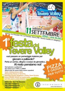 Primo appuntamento dell’associazione Tevere Volley con una festa all’insegna dello sport, del volley, dell’allegria e dello stare un pomeriggio insieme. Tevere Volley nasce dalla collaborazione di tre società sportive: Polisportiva Penna in Teverina, Sporting Fossate Attigliano e Volley Team Orvieto e sabato 11 settembre l’unione si concretizza nel primo appuntamento con i ragazzi e ragazze nati tra il 1995 e il 2002 che si avvieranno a questo magnifico sport che è il volley. La festa si svolgerà ad Attigliano, precisamente presso ‘Le Fossate’ a pochi passi dell’uscita al casello A1 di Attigliano. Per tutti pizza e gadget. Sui campi di volley allestiti i tecnici qualificati attenderanno le giovani speranze; campioncini/e pronti/e a passare un pomeriggio di sport. La Tevere Volley è pronta, porta un sorriso, allegria e scarpe da ginnastica… al resto ci pensiamo noi. Per informazioni: info@teverevolley.it, Massimo 335-1017146, Franco 328-7381729, Claudio 338-778640. Sponsor ufficiale Internetwork.