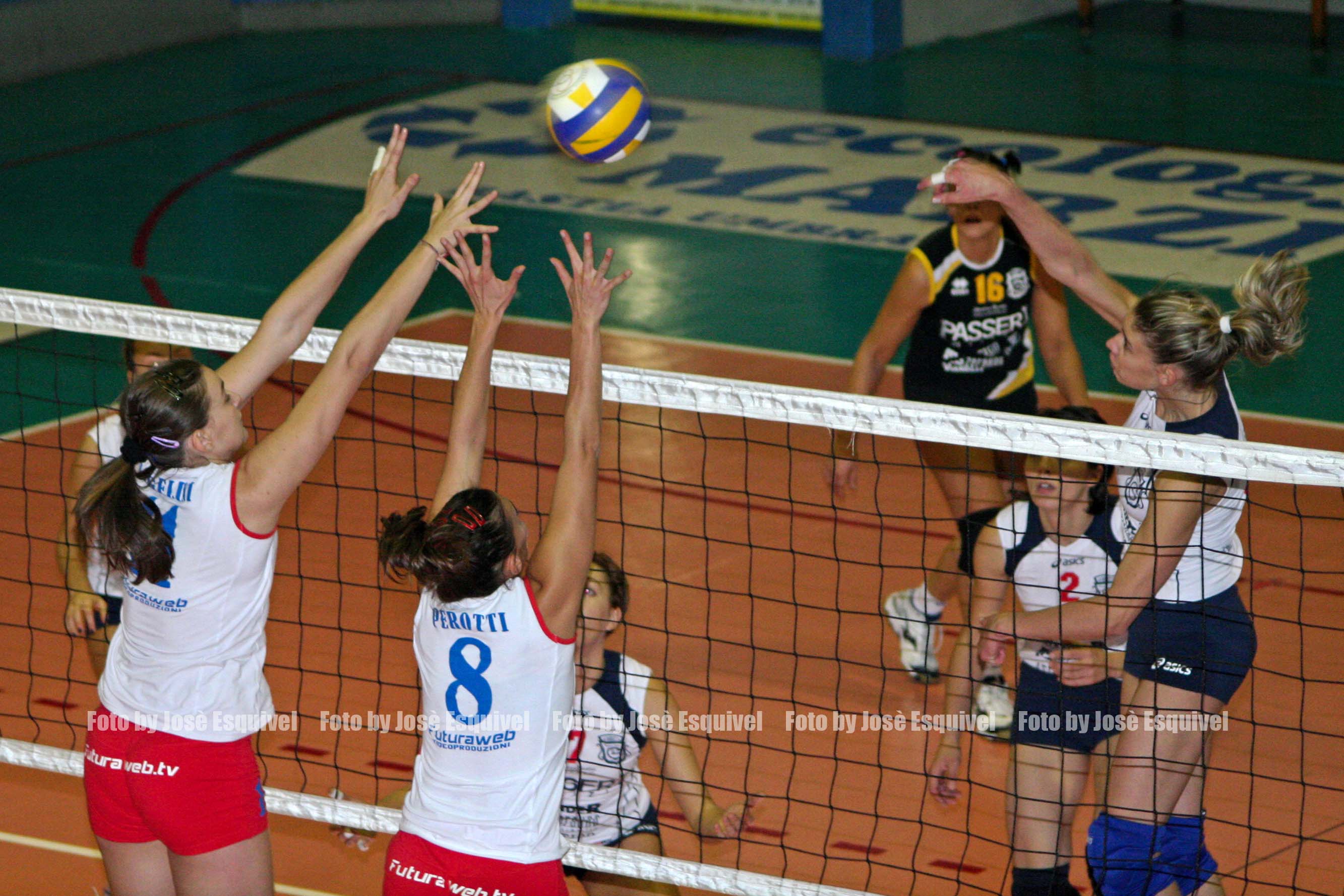 La Toscana mette paura alla Edilizia Passeri Bastia che inizia il suo viaggio con qualche preoccupazione per il delicato impegno e dopo due set si ritrova in un incubo. Sembrano riemergere gli spettri di Empoli, ma da allora è passato un mese e la squadra è cresciuta, le umbre infatti, pur sotto 14-9 nella terza frazione, non cedono al panico e trovano la forza di cambiare ritmo ed andarsi a conquistare un’importante affermazione. Nella seconda metà della contesa la Videomusic Castelfranco trova pane per i suoi denti e deve lasciare strada ad un collettivo che scopre una nuova cadenza. Una gara studiata nei minimi particolari dalle padrone di casa che hanno marcato a sangue le centrali costringendo le umbre a giocare schemi più scontati con palla alta. Al fischio d’inizio non esiste Bastia che affonda immediatamente sotto i colpi di Pellegrini (8-4), il tecnico Ricci cerca soluzioni nuove e sostituisce la regia, con Bucciarelli in campo una leggerissima ripresa si avverte nel finale, Miccadei e Mezzasoma si mettono in evidenza ma il parziale è contraddistinto dagli errori, saranno ben dieci i punti regalati, il che rende impossibile ogni buon proposito. Anche dopo il cambio di campo la partenza è falsa (4-2), ma stavolta le bastiole non perdono contatto e per un po’ si procede a braccetto (14-14), dopo il secondo time-out tecnico è la Caverni a scavare il solco, le locali si distendono ed acquisiscono un break di vantaggio (20-18), nel finale lo incrementano e fanno sprofondare ancor più la Edilizia Passeri. Nel terzo frangente si teme il peggio, tutto lascia presagire ad una terribile debacle (14-9), quando ecco che in un batter di ciglia il parziale torna in asse (14-14), negli occhi delle umbre si nota una luce nuova, il cambio di registro si manifesta in seconda linea e propizia l’allungo (18-21), il muro di Cerbella accorcia le distanze. La quarta frazione è sempre ben gestita da Bucciarelli (3-8), le cinque lunghezze di margine sono conservate sino alla seconda interruzione forzata ma subito dopo tutto torna in discussione (18-18), nel rush finale è sufficiente non regalare nulla per scampare il pericolo e rimandare il verdetto. Il tie-break è sulla falsa riga del set precedente, Bastia conduce sino al 4-7, ma poi Bertini riapre di nuovo i discorsi (11-11), dopo oltre due ore ed un quarto di gioco è la fast di Lorio a chiudere la contesa e far esplodere la gioia del collettivo ospite. Una buona prova di carattere per le ragazze del presidente Ubaldo Passeri che hanno reagito ad un contesto estremamente negativo dimostrando carattere e personalità; a livello individuale da sottolineare la prestazione dei martelli Miccadei e Mezzasoma che sono risultati pari merito match winner della serata. A commentare a caldo è il dirigente Antonello Polticchia: “Se Castelfranco avesse giocato col ritmo del primo set sarebbe stata veramente dura per noi. E’ stata una partita sofferta con le nostre avversarie che hanno imperversato in attacco, lo dimostrano i pochi punti raccolti a muro, solo undici in cinque set che non sono proprio lo standard a cui siamo abituati. Ma va bene così ora guardiamo all’impegno che viene”. Visti anche gli altri risultati la Edilizia Passeri si permette di allungare in graduatoria e comincia a pensare a sabato prossimo, al Pala-Giontella c’è da preparare lo scontro con la capolista.