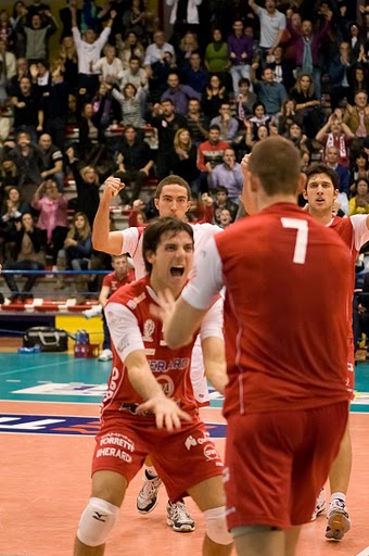 Fanno tutto bene i biancorossi di Radici e battono per tre a zero la Geotec Isernia che era giunta in Altotevere forte della vittoria su Milano. Grande la prova di tutti i giocatori della Gherardi Cartoedit Svi Città di Castello dall’inizio alla fine ma una menzione particolare è d’obbligo per Vedovotto e Nemec che vince nettamente il confronto con Sabbi. Si comincia con alcune assenze nei sestetti, la più grave è in quello della formazione di casa che deve fare a meno di capitan Rosalba, alle prese con problemi fisici, mentre Isernia è senza De Paola, infortunatosi nel match infrasettimanale contro Milano. Radici sceglie ovviamente Lipparini per la sostituzione del ‘Ros’ ma subito Sabbi si fa trovare pronto e conduce i suoi sul 2-5. Nemec attacca il 5-7 poi è un pallonetto a due mani di Valera a mandare tutti al primo time out tecnico (5-8); al rientro i locali accorciano le distanze (8-9) anche se lo svantaggio di un break rimane sempre fino alla parità a quota 14, raggiunta per un errore di Sabbi. Al secondo time out tecnico la formazione di Radici conduce 16-15 con il muro di Ravellino su Westphal ma la Geotec riagguanta i tifernati per l’errore di Vedovotto. Città di Castello, però, non si perde d’animo e continua a giocare bene, cercando con la battuta tattica di mettere in diffic9ltà la ricezione ospite e così Sabbi è costretto all’errore per ben due volte (19-21). Va sul velluto ora la Gherardi Cartoedit Svi che conduce in porto l’1-0 per 25-22 con la bomba da posto quattro di Nemec. La partenza di Isernia nel secondo set è bruciante (3-0) , è Nemec che si incarica di pareggiare i conti con un ace (4-4). Un paio di errori biancorossi fanno ancora scappare la Geotec (5-7) che è ancora riagguantata e superata da un muro di Ravellino (9-8). Il servizio di un Vedovotto in grande spolvero scava un bel break (13-10), costringendo Cannestracci al time out che non giova a nulla perché Nemec spara nel campo avversario la palla del 16-12 e l’ace del 17-12. La Geotec va in confusione e sbaglia due attacchi di seguito (21-13) sul servizio di Lipparini, Cannestracci toglie Sabbi per Beccaro e chiama un altro time out che non serve a nulla perché Vedovotto chiude un’azione interminabile con un diagonale vincente (22-13). I molisani tentano un disperato recupero, con in campo diverse riserve, che si ferma sull’attacco di Nemec che sigla il 25-17. L’opposto slovacco scava il primo break del terzo set dalla zona di battuta (4-1) ma i ragazzi di Cannestracci pareggiano a quota 4. Sul 6-4 (ace di Nemec e muro di Bortolozzo) il coach ospite toglie Pambianchi per inserire Turano che non può nulla contro lo scatto biancorosso (8-4). I tifernati riescono a giocare in scioltezza e tranquillità con Vedovotto mostruoso in attacco e tanta voglia di vincere: sul 14-7, dopo un errore di Sabbi, il coach molisano richiama i suoi in panchina. Al secondo time out tecnico Orduna e compagni conducono 16-10 e contengono con grande abilità il tentativo di recupero della Geotec (22-17). Andrea Radici concede anche il brivido dell’esordio in A2 al giovane Del Castello al posto di Vedovotto prima dell’ultimo disperato assalto di Sabbi dal servizio ma sul 24-20 l’opposto ospite sbaglia la battuta e Città di Castello può gioire per un meritato successo.