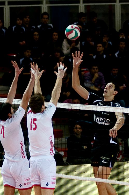 Mamma mia che bel Castello. La Gherardi Cartoedit Svi Città di Castello rimonta in modo straordinario dallo zero a due, annulla tante palle match e trionfa nel quinto set, recuperando dall’8-10 sulla capolista Phyto Performance Padova. Già dalle prime battute si era capito che la partita sarebbe stata spettacolare e lo è stata davvero, con una cornice di pubblico degna della serie A1 e con due squadre che sbagliano pochissimo. Grande, grandissimo il cuore dei ragazzi di Radici che sono stati sospinti da un pubblico che ha pochi eguali in Italia. La partita ha avuto una durata di due ore e quarantatre minuti di gioco effettivo, nuovo record per la serie A con il rally point system. Dopo l’inno di Mameli, si parte con tanto tifo da ogni parte, visto che sono presenti anche circa 50 tifosi di Padova. Gli ultras biancorossi espongono uno striscione per salutare le 100 partite in A2 dell’allenatore Andrea Radici e una bandiera giapponese listata a lutto, molto apprezzata da Yu Koshikawa. Campeggia anche uno splendido manifesto con cui la società del presidente Joan festeggia i 150 anni dell’unità d’Italia: tutto molto bello! In campo vanno i sestetti annunciati che cominciano subito a battagliare con Tiberti che mura Rosalba per il primo punto. Poi Rossi e lo stesso capitano riportano i tifernati avanti (4-2) ma al primo time out tecnico è avanti la squadra ospite (7-8) con un ace di Koshikawa. I due sestetti cercano di forzare molto il servizio e sbagliano qualcosa ma la partita è godibilissima, anche per lo spettacolo di tifo offerto dai supporters. Nemec firma il sorpasso (10-9) poi Rossi inchioda l’11-9 con un muro su Burgsthaler; da parte Phyto Performance è Uchikov a chiudere due punti di fila che fanno 11-12. Si gioca con grande grinta e tecnica da tutte e due le parti, con difese spettacolari nelle quali si distinguono Garghella e Koshikawa da una parte e Vedovotto e Rossini dall’altra. La super di Vedovotto spedisce le squadre al secondo time out tecnico sul 16-15 ma il muro ospite è schierato su Nemec per il 16-17 che diventa 16-18 per un punto contestato su attacco di Rosso. Sul 16-19 Andrea Radici chiama time out per interrompere la serie in battuta di Koshikawa e ci riesce con Vedovotto (17-19). Due muri di fila di Di Benedetto e Rossi su Rosso (che gioco di parole visto che in campo ci sono anche Rosalba e Rossini), rimettono in carreggiata il set per i padroni di casa (20-20). Si ricomincia con il punto a punto fino al 23-24 (parallela di Koshikawa) ed Andrea Radici richiama ancora i suoi in panchina: al rientro Uchikov spara la bordata del vantaggio (23-25). Nel secondo set l’ace di Rosso dà subito un doppio vantaggio alla Phyto Performance (3-5), Vedovotto, da buon veneziano, non ci sta e schiaccia la palla del 7-7. Sul punto del 7-8 i due arbitri sono ancora una volta pro Padova ma è ancora Vedovotto con due block out di fila e un ace a portare avanti i ragazzi di Radici (12-10), incitati a gran voce da un pubblico degno di un’altra categoria. L’ace di Nemec regala un altro punto ai padroni di casa (15-12) che va al secondo time out tecnico con il punto di Orduna (16-14). Un ace, fortunoso questa volta, di Uchikov consente ai veneti di raggiungere Città di Castello, superati poi da Koshikawa (16-17). La partita continua a essere stupenda e giocata punto su punto (19-19) con delle azioni di altissimo livello anche se Padova, nel tentativo di forzare, sbaglia qualche battuta di troppo. Un altro attacco di Vedovotto regala la palla set alla squadra di casa (24-23) che è vanificata dall’errore in battuta di Nardi. Sul 24-24 Montagnani fa entrare l’ex biancorosso Sabo che nulla può sulla schiacciata di Vedovotto e così c’è un’altra palla set sul servizio di Orduna. Cricca annulla la seconda opportunità dell’1-1 e poi Burgsthaler sposta da parte patavina il possibile set point (25-26): ci pensa Di Benedetto a schiacciare il 26-26. Rosso fa 26-27 e Radici chiama il secondo time out dopo il quale la pipe di Vedovotto è vincente (27-27). Il terzo set-point ospite lo sigla Rosso e lo vanifica Rosalba, che partita! Nemec trova l’ace del 29-28 (time out Montagnani) poi spara out di 10 centimetri il pallone del possibile 1-1. Si ribalta di nuovo la situazione con il muro di Uchikov e poi l’errore di Vedovotto chiude un set interminabile (29-31). Nel terzo set le due squadre sembrano un po’ rifiatare in avvio, anche se Padova prende due punti di vantaggio (6-8) al primo time out tecnico per un errore dei ragazzi di Radici. La battuta di Koshikawa dà ancora fastidio alla ricezione di Città di Castello (7-10) che cerca di rimanere a contatto con un avversario deciso a riallungare in classifica rispetto alla Marcegaglia Ravenna. Un’invasione sotto rete di Tiberti riavvicina la Gherardi Cartoedit Svi (10-12) che sembra tornata nel set anche se Padova arriva prima al secondo time out tecnico (14-16). Va in campo Lipparini per dare un po’ di fiato in seconda linea a Vedovotto ma nell’azione successiva Rosso e Cricca murano Nemec (15-18). Tiberti pesca un altro ace (18-21) e, sul 21-23, un attacco out di De Marchi riaccende le speranze dei tifernati ma è lo stesso giocatore padovano a mettere a terra il 22-24. Nemec cerca un ultimo sussulto e lo trova (24-24) poi Koshikawa sigla il 24-25. Il finale è ancora al cardiopalma: Rosalba fa 25-25 e Rosso 25-26 poi Koshikawa spara in tribuna la quarta palla vittoria ed allora il capitano riapre il set tra l’entusiasmo generale (27-26). Nemec sbaglia il servizio, Rossi schiaccia il 28-27 ed Uchikov annulla e mura per il 28-29. Vedovotto restituisce la pariglia (29-29), Koshikawa è abile per il 29-30, Vedovotto altrettanto (30-30), la pipe di Rosso frutta l’ennesima palla match (30-31) vanificata dal servizio out di Uchikov. Uno straordinario Vedovotto sigla l’ace del 32-31, Koshikawa è ancora vincente, poi lo stesso giapponese sbaglia il servizio e Uchikov pareggia (33-33) poi si fa 