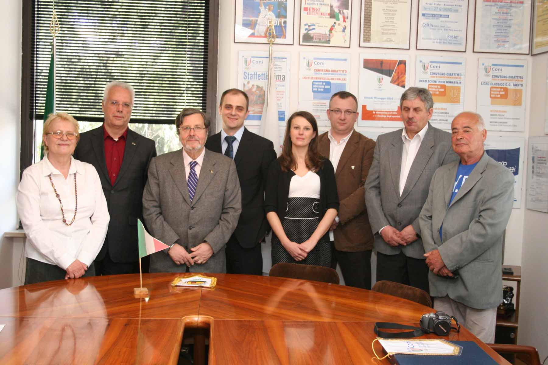Il presidente del Coni provinciale di Terni Massimo Carignani ha ricevuto una delegazione polacca che si trova a Terni per organizzare, insieme al Colleluna Volley, un torneo di pallavolo under 16 che si svolgerà nel mese di giugno. Si tratta del ‘Trofeo della solidarietà’ già organizzato a Terni due anni fa con giovani bielorussi. Quest’anno a rispondere all’appello sono stati i responsabili di una scuola di Zyrardow, un istituto ad indirizzo sportivo intitolato a Maria Konopnicka e che raccoglie 400 ragazzi dai 6 ai 18 anni. La delegazione era formata dal preside della scuola Kryzstof Waskowsky, dal presidente del club sportivo Zyrardowianka, l’ispettore del reparto fondi europei Marilena Markiewicz e il direttore del dipartimento promozione e cultura del medesimo comune polacco di Zyrardow. Insieme alla delegazione c’erano inoltre la presidente della comunità polacca a Terni Anna Grabowska e il presidente Filiberto Filidei del Colleluna Volley. “Siamo sempre particolarmente felici di poter assistere a scambi sportivi e culturali – ha commentato Carignani – in questo momento poi Italia e Polonia sono particolarmente legate anche grazie alla ormai prossima beatificazione di papa Giovanni Paolo II”.