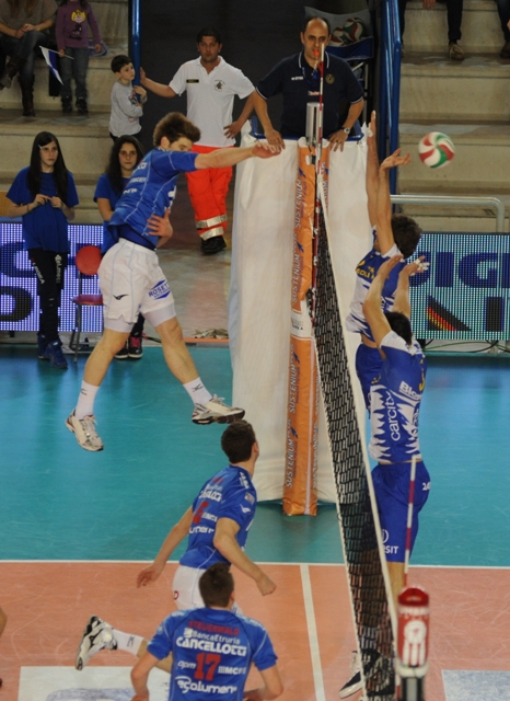 Il sogno diventa realtà: la Rpa-LuigiBacchi.it San Giustino conquista un posto nei play off, nell’ultima giornata della stagione regolare della serie A1 Sustenium, battendo l’Andreoli Latina, per tre set a zero. Entusiasmo al massimo al Pala-Kemon dal primo pallone giocato. Inizia il punto a punto: Latina gioca molto al centro, San Giustino predilige gli schiacciatori. A Khout risponde Dias: 5 pari. E’ l’opposto brasiliano a mettere giù il primo minibreak dell’incontro: 7-5. L’Andreoli, però, che non è venuta a fare una passeggiata pareggia. Bravo Cester a fermare a muro l’attacco degli ospiti: 8-7 al primo time out tecnico. E’ Dias il miglior realizzatore dei suoi nella prima parte del parziale: la sua schiacciata ed il muro di Nikic su Kovacevic consentono a San Giustino di portarsi a più tre: 10-7 time out Medei. Latina imprecisa regala due punti agli avversari. Ottimo il turno di battuta di Schwarz. Funzionano alla perfezione gli ingranaggi dei locali. Il muro tocca molti palloni, Latina non passa: 16-9 per i padroni di casa al secondo time out tecnico. Finazzi regala il diciassettesimo punto ai suoi: nuovo time out Latina. Ma i padroni di casa allungano. I pontini, dopo un buon inizio, mollano la presa: 21-12. Prova con Vujevic al posto si Popelka, ma la distanza tra i due sestetti è notevole: 24-13. Con il giallo a Kovacevic si chiude il set. Entrambi gli allenatori rimandano in campo gli stessi sestetti nel secondo parziale: 4-2 per San Giustino. Latina sbaglia molte battute ad inizio set, facile gestire il cambio palla per i padroni di casa che, con il muro di Finazzi, vanno avanti di tre lunghezze al primo time out tecnico. Gli altotiberini si fa rimontare: qualche imprecisione in ricezione, a quota 11 il pareggio: time out Zanini. Di nuovo in campo Vujevic per Popelka. Dias va a prendersi l’ace: 14-13. Nuovo sorpasso, però, degli ospiti con il muro di uno degli ex, Nikola Kovacevic: 15-16. Ha cambiato marcia la squadra ospite, decisamente più incisiva e combattiva. Sul 15-17 per Latina cambio in regia per gli umbri: Zhukouski per Steuerwald. C’è una nuova parità al punto 17: time out Medei. Muro di Nikic vincente: di nuovo avanti la Rpa-LuigiBacchi.it che allunga di tre punti per poi vedere l’Andreoli ad un passo: 20-19. Schwarz in pipe, l’errore di Starovic: 23-20: Medei richiama i suoi. Un grande Nikic dalla seconda linea regala il primo di 4 set-point agli altotiberini: chiude Schwarz 25-20. E’ subito 5-1 per i padroni di casa nel terzo set. San Giustino vuole i tre punti e i playoff: 8-4 al primo time out tecnico. C’è già aria di festa al palasport. Ma l’Andreoli non demorde: 8-7 time out Zanini. Al pareggio nuovo cambio in regia: Zhukouski rileva Steuerwald. La battuta vincente di Popelka segna il vantaggio dei pontini: 8-9. Il tecnico degli umbri vede i suoi ragazzi poco concentrati. Nuovo time out sul 10-12 per Latina. I trenta secondi rigenerano San Giustino che trova il pareggio. Il muro a tre su Starovic fa mettere la testa avanti ai padroni di casa: 14-13. Con il punto di vantaggio degli umbri si arriva al secondo time out tecnico. Il punto a punto prosegue fino al 20-21 per gli ospiti: entra Maric per Schwarz. Dias mette giù il punto 23: l’Andreoli è a 22. Time out Medei. Le due squadre non mollano. Ha qualcosa da dare in più la formazione di casa che, dopo un estenuante terzo set che dura ben 35 minuti, chiude il match a proprio favore conquistando il sogno chiamato play off. A fine match le parole a caldo del tecnico Emanuele Zanini: “Raggiungere i playoff è stata una vera e propria impresa. Una squadra prevalentemente di giovani, ha visto premiata la propria tenacia. I ragazzi ci hanno creduto fino in fondo. Abbiamo raggiunto questo obiettivo solo grazie alle nostre forze. Il ringraziamento va a tutti: alla società che ha fatto questa scelta che si è rivelata vincente, ai giocatori, ovviamente, allo staff tecnico e medico e al pubblico con il quale si è creato un incredibile feeling.
