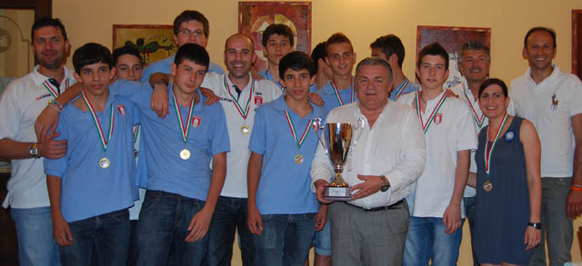 Il presidente dell’Umbria Volley San Giustino Claudio Sciurpa ha festeggiato insieme con il direttore sportivo Andrea Sartoretti la squadra under 16 maschile. Cena a San Giustino e, per ogni giocatore, medaglia personalizzata per premiarli della splendida stagione conclusasi con il terzo posto ai campionati assoluti di categoria. “Ci avete fatto sognare – ha dichiarato Sciurpa – il tie break contro Treviso è stato emozionante, siano stati ad un passo dalla finale. Ma è stato fantastico lo stesso. Con la under 16 abbiamo raggiunto il miglior risultato in assoluto con il settore giovanile”. La serata è coincisa con il saluto a coach Romano Giannini che, dopo aver dato vita ad una stagione memorabile, si è congedato dai giovani di San Giustino per iniziare la nuova avventura ad Isernia.”Ci siamo salutati – ha proseguito il presidente – ma ci siamo anche detti che i nostri percorsi potrebbero nuovamente incontrarsi. Mai dire mai”. Alla serata era presente anche il responsabile tecnico del settore giovanile Luigi Banella, lo staff tecnico e dirigenziale al completo. Per ognuno di loro c’era la medaglia. La stagione dell’under 16 è stata possibile grazie al lavoro di tutti.