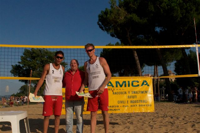 Dopo un due giorni di intense partite, si conclude domenica sera la prima edizione dell’open regionale ‘30 anni La Merangola Sport Beach’ disputatesi sui tre campi di Castiglione del Lago. Organizzato dal comitato regionale della Fipav in collaborazione con il comune castiglionese, il fortunato evento deve l’ottima riuscita non solo al tempo atmosferico e all’ottima qualità dei campi di sabbia ma soprattutto all’incessante impegno di Gianluca Carloncelli, responsabile e selezionatore beach volley maschile dell’Umbria, Emanuele Pippi, allenatore e selezionatore di beach volley femminile, Roberto Allegria, responsabile del comitato provinciale di Perugia, e a molti altri che si sono prodigati senza sosta fra cui vanno certamente citati tutti gli arbitri che hanno subito un vero e proprio tour de force, con ben 45 partite giocate nella sola giornata di sabato. Ottimi risultati raggiunti come dimostra il folto pubblico accorso per l’evento e il fatto che e le squadre venute da fuori regione abbiano ampiamente elogiato l’organizzazione prenotandosi già per il prossimo appuntamento. Delle 21 coppie di pallavolisti provenienti da Umbria, Toscana, Lazio ed Emilia Romagna, gli umbri sono riusciti a piazzarsi al 3° e 4° posto con la coppia ternana Coccetta – Rubini che ha battuto i perugini Pochini – Salvatori 2-1 (21-16; 17-21; 15-11) dimostrando un ottimo livello di gioco. Di fuori regione invece le finaliste che, il giovedì precedente, avevano disputato le qualifiche per entrare in tabellone alla tappa del campionato italiano in programma a Vasto. Al primo posto la coppia romana Pallassini – La Rosa i quali, con i loro forti attacchi, hanno strappato la vittoria agli avversari emiliani Oligeri – Porcellini con un lottatissimo 2-1 (21-15; 17-21; 15-11). Alle premiazioni sono accorsi l’assessore allo sport Alessio Meloni e il presidente della federazione pallavolo umbra Giuseppe Lomurno, dimostrando l’importanza e la forte attenzione riservato a questa disciplina. Il prossimo appuntamento per gli amanti del beach è fissato per il prossimo fine settimana (23-24 luglio) sempre al Merangola Sport Beach dove si svolgerà un Memorial per Andrea Cicconi in cui si giocherà con la formula mista (due uomini ed una donna).