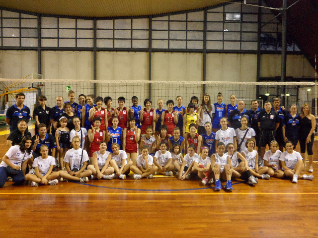 Domenica 7 agosto è andato in scena al Pala-Rota di Spoleto l’incontro amichevole di pallavolo femminile tra le nazionali cadette italiana e giapponese. Un vero spettacolo di sport quello offerto dalle giovanissime ragazze scese in campo che, nonostante le ottime abilità tecniche e, specie tra le azzurrine, le grandi potenzialità fisiche, non superano i 17 anni di età. L’incontro è stato avvincente, con le nipponiche sempre determinate a contrastare l’indiscussa supremazia delle italiane, che si sono aggiudicate la vittoria in soli tre set. Il confronto tra realtà pallavolistiche e non solo così lontane ha proposto, fin dalla fase di riscaldamento, interessanti spunti d’osservazione agli addetti ai lavori e agli appassionati, che hanno partecipato numerosi. Soprattutto le bambine e ragazze della Volley Spoleto, organizzatrice dell’evento, hanno gustato una ricca giornata di volley, inaugurata dall’amichevole di cui sono state loro stesse protagoniste, insieme alle cugine della Clitunno Volley, prima del big match, e conclusa con le foto ricordo e la cena insieme alle beniamine delle nazionali. A fine serata, il presidente della Volley Spoleto, Mauro Storri, che si è detto soddisfatto di questa calda domenica d’agosto, ha colto l’occasione del brindisi finale per ringraziare le autorità della Fipav intervenute, quali Benito Montesi, Agostino Benedetti e Giuseppe Lomurno, e per fare un caloroso in bocca al lupo alle rappresentative dei coach Pieragnoli e Hanzawa, prossime ai Campionati Mondiali di categoria in programma dal 12 agosto in Turchia.