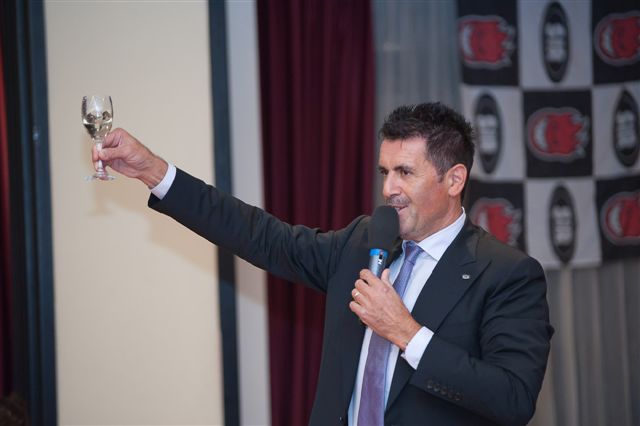 Erano in tantissimi, circa 170 persone tra sponsor, autorità, giornalisti e semplici amici, ieri sera al ristorante Villa Rabasco di Bastiola per la tradizionale cena di presentazione della rinnovatissima Sir Safety Perugia. Un evento ormai diventato piacevole consuetudine per la società bianconera, un evento nel quale i nuovi block-devils hanno potuto toccare con mano l’entusiasmo contagioso dell’ambiente. Moltissimi gli sponsor che hanno voluto conoscere la squadra, presente al gran completo assieme allo staff tecnico guidato da coach Slobodan Kovac (assenti giustificati il vice allenatore Fontana e uno dei due scout man Carloncelli). Era presente anche l’amministrazione di Perugia, nella persona dell’assessore allo sport Ilio Liberati, e la federazione di pallavolo con il presidente Fipav Umbria Giuseppe Lomurno.