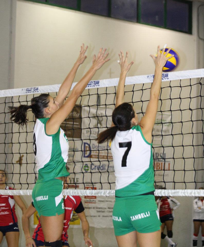 La Zambelli Tecnocaravan Orvieto fa ancora valere la legge dello Scalza Signorelli. Sul proprio campo le orvietane mettono in cassa la quarta vittoria, la seconda consecutiva e a farne le spese questa volta è la Unipol Terni. Un derby dai due volti: avvio fulmineo delle locali che nulla lasciano alle avversarie e risveglio delle ospiti nei due set finali. In casa orvietana da registrare le assenze pesanti della centrale Federica Cerbella e dell’opposta Sara Veritieri. Assenze che nei due set iniziali, sono state ben colmate da Irene Valentini e da Valeria Viali che debutta da titolare con 13 punti. In cattedra, al centro, una stupenda Chiara Valentini che nei due set finali ha preso in mano la squadra trascinandola alla vittoria finale, per lei 15 punti. Primi due set dove la Zambelli Tecnocaravan fa vedere la differenza in campo, la Unipol riesce in parte a controbattere con il capitano Pecoraioli, ma gli attacchi di Viali, Ricciardi e Chiara Valentini portano l’Orvieto sul due a zero. Le ternane della Unipol aumentano di qualità nella fase difensiva, ottima la prova del libero Bartolucci che riesce a raccogliere di tutto, ma è tutta la Unipol che ribatte colpo su colpo. Nel terzo set sembra proprio un’altra gara con la Zambelli che si vede sotto con il tabellone che segna 17/23. Al servizio Chiara Valentini tiene quattro battute con la sorella Irene che mette a terra tre punti preziosissimi. Fast di Grasselli, muro di Viali ed alcuni errori delle ospiti portano il set sul 25 pari. Con caparbietà la Unipol riesce con il primo tempo di Pecoraioli a portarsi in vantaggio e l’errore finale di Ricciardi porta il risultato sul due a uno. Finale di gara con la Zambelli Tecnocaravan che ritorna a giocare con più lucidità. Diventa gara combattuta ma Orvieto gestisce il vantaggio con Chiara Valentini che solo in questo parziale mette a terra otto punti. Vittoria che fa mantenere l’imbattibilità casalinga: quattro gare con altrettante vittorie. Il team di coach Moriconi rimane a ridosso delle prime tre in classifica, al quarto posto insieme alla ex capolista Ars Perugia battuta in casa dalla Multicopia Perugia. Prossima sfida domenica 21 alle ore 18.00 in trasferta contro il Trasimeno.