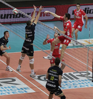 Terzo set – Macerata torna a guidare il gioco ad inzio set e sul 2-4 De Giorgi ferma il gioco. I padroni di casa pareggiano, gli ospiti si innervosiscono e Omrcen prende il giallo: 7-6. Al primo timeout tencico la Energy Resources è avanti di un punto. Bene Rauwerdink e Urnaut: 10-8. Sbaglia l’attacco Patak: 11-9. Troppo veemenza nella battuta di Parodi, muro di Finazzi: 13-9. Passa Omrcen tra le braccia del muro altotiberino: 13-10. Finazzi passa al centro, attacco vincente degli ospiti: 14-11. Recuperano due punti gli ospiti: 15-13 e De Giorgi chiama timeout. Con l’attacco vincente dell’opposto americano, la Energy Resources è avanti di tre punti al secondo timeout tecnico. San Giustino cerca di tenere a distanza i pericolosissimi avversari che con Parodi si riportano a meno uno. Pareggia Omrcen a quota 19. Molto buona la prova di Patak che si è allenato una sola volta con i suoi nuovi compagni: è suo il punto numero 20 e la Lube ferma il gioco. Patak è bravo a cercare le mani del muro ospite, l’opposto di Macerata non sbaglia un colpo: è suo l’ace del vantaggio: 21-22. Savani allunga e Patak sbaglia l’attacco del 21-24 per i marchigiani. Chiude Savani: 21-25.