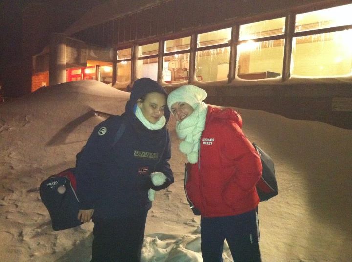 La situazione neve è molto variabile nel territorio della piccola Umbria. Alcune località sono tornate a subire i capricci del maltempo proprio in queste ore mentre in altre zone i fiocchi di neve non sono nemmeno stati avvistati. Tra i comuni più colpiti c’è sicuramente Fossato di Vico che ha registrato una nevicata di proporzioni storiche. Nella foto le giocatrici rossoblu, la centrale Sonia Sechi e la palleggiatrice Cinzia Brunelli, mostrano la quantità di precipitazione che si è posata appena fuori dal palazzetto dello sport. La redazione di Pianeta Volley invita a spedire alla posta elettronica info@pianetavolley.net le immagini di altre cittadine per testimoniare il particolare evento atmosferico.