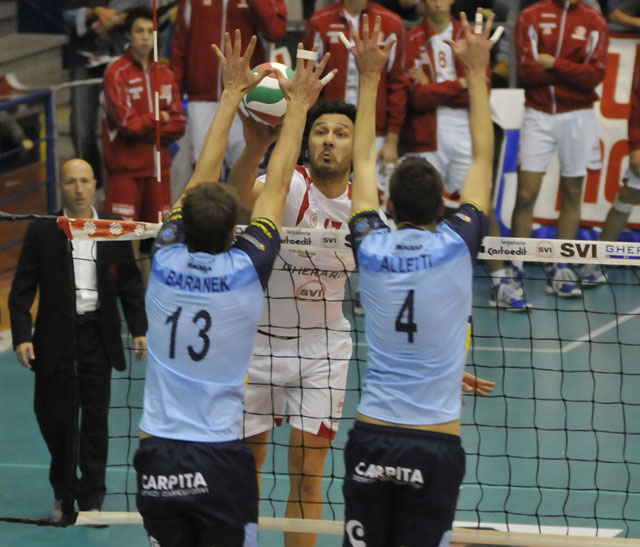 Grande impresa della Gherardi Svi Città di Castello nella tana della Crazy Diamond Segrate. La squadra di Andrea Radici rende pan per focaccia ai lombardi che si erano imposti al Pala-Ioan e si riportano prepotentemente nelle posizioni di alta classifica. In avvio di gara Andrea Radici manda in campo il sestetto titolare, quindi con Visentin in campo, mentre Daniele Ricci non dispone di Fabroni, al suo posto Pinelli, con in panchina il giovane Tescaro. Va subito a segno Giombini a muro su Botto, doppia subito Piano (0-2), lo 0-3 è di Rosalba ed allora Daniele Ricci chiama time out. I biancorossi continuano a macinare gioco e punti e in un batter d’occhio si porta sul 2-7, costringendo Ricci alla seconda sospensione discrezionale. Al primo time-out tecnico i tifernati conducono 3-8 grazie al punti di Rosalba. Canzanella attacca in rete il punto del 3-10 ed allora il coach segratese è costretto a schierare Baranek al posto del giocatore napoletano. Giombini mette a terra il 4-11 e bissa con il mani out del 4-12. L’ingresso dello schiacciatore ceco non intimidisce i biancorossi che veleggiano sul 6-14, ancora con Rosalba. Al secondo stop tecnico i tifernati sono avanti 7-16 su Segrate che sostituisce anche Alletti con il rientrante Spairani. Botto sbaglia la battuta dell’8-16, la Crazy Diamond recupera due punti con Van Den Dries (10-18), ci pensa Lehtonen a ristabilire le distanze a muro (10-21) e a sparare l’ace dell’11-23. I padroni di casa mangiano cinque lunghezze agli umbri (16-23) sul servizio di Baranek che poi fallisce il servizio del 16-24. Noda Blanco va all’attacco dalla zona due e non fallisce l’opportunità di chiudere la prima frazione. Nel secondo set il primo punto è di Segrate con Russo, poi due errori lanciano i padroni di casa (3-0). Un pallonetto di Van Den Dries cade a terra per il 5-0 ed allora Andrea Radici ferma il gioco per tranquillizzare i suoi. Giombini sfonda il muro lombardo per due volte (5-2), Rosalba mura l’opposto belga (6-4) e i biancorossi tornano nel set, anche grazie a due errori dei segratesi (7-6). Al primo time out tecnico è 8-6 per i ragazzi di Ricci che subiscono l’attacco di Noda Blanco (8-7) e quello di Giombini che pareggia i conti (9-9). Il fallo di seconda linea di Pinelli porta avanti Città di Castello (10-11) che va sull’11-13 grazie al muro di Lehtonen e Rosalba su Van Den Dries. Entra in campo anche Preti per Van Den Dries ma sale in cattedra anche Giombini a muro e con la battuta a punto di Piano si va al secondo time out tecnico (11-16). Preti va a segno per il 13-16 poi Rosalba spara il 13-17 in diagonale. Piano mura seccamente Botto (16-20) e poi si incarica di schiacciare il primo tempo del 18-22. Stessa cosa fa Lehtonen (20-24) poi Radici si arrabbia per un’invasione sotto rete di Spairani non fischiata e Pinelli va a punto (21-24). Dopo il time out del coach biancorosso, Rosalba inchioda Van Den Dries e mette la parola fine al secondo set (21-25). Ace di Noda Blanco in avvio di terzo set (0-1), poi le due squadre procedono punto a punto fino al 4-4, Piano a muro ferma Van Der Dries e fa il break (4-6); l’attacco sull’asta di Baranek regala il 5-8 ai biancorossi al primo time out tecnico. Un altro muro a segno di Rosalba su Van Der Dries porta Città di Castello sul 6-10 e costringe Ricci a togliere l’opposto belga per reinserire Preti. Niente da fare perché Giombini è implacabile (6-11) e Lehtonen firma l’8-13 con un gran primo tempo. Un muro di Preti e una battuta di Pinelli riavvicinano la Crazy Diamond (12-14) che sfrutta anche il muro per il 13-14. Radici chiama time out ma al rientro Preti pareggia (14-14). Un rocambolesco punto di Preti dà il vantaggio ai padroni di casa al secondo time out tecnico (16-15). I biancorossi di Radici ritornano avanti (16-18) con una decisione contestata dai padroni di casa che si beccano anche un cartellino giallo (all’indirizzo Van Der Dries in panchina). La situazione esalta Segrate tanto che Preti firma il 18-18. L’ace di Piano ricaccia indietro la Crazy Diamond (19-21) che tuttavia non molla (21-22). Botto va a segno per il 22-23 poi il muro di Russo, sul servizio di Pinelli, pareggia ancora (23-23). Andrea Radici ferma il gioco e Lehtonen mette a terra la palla del 23-24 poi però fallisce il servizio (24-24). Piano non sbaglia il 24-25 e Noda Blanco manda tutti negli spogliatoi.