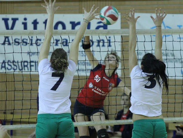 Il recupero della diciassettesima giornata di serie D femminile mette di fronte alla Vittoria Assicurazioni Perugia sul campo amico di San Marco la Vipal Colleluna Arrone, entrambe le formazioni sono vogliose di rivincite dopo l’ultima partita persa al tie-break. Al fischio d’inizio si combatte alla pari sino al 5-5, poi sul turno di battuta di Monti le padrone di casa piazzano il parziale di sette a zero con Verna e Antolini sugli scudi (12-5). Le perugine continuano a sbagliare pochissimo e vanno agevolmente sul 20-12, lasciano a Cherubini il compito di chiudere. Il secondo set è marchiato a fuoco già dall’inizio (7-1). La seconda linea arronese che riesce a opporre una minima resistenza, Schippa e Antolini non perdonano ed in breve è il raddoppio. Nel terzo parziale entra Truffarelli al posto di Verna, ma la musica è la stessa, dopo aver messo a segno i primi quattro punti le ragazze del presidente Bettini assestano ancora colpi terribili (11-5). Un paio di errori permettono alle ospiti di riportarsi sotto (12-9) ma un’altra buona serie propiziata da Truffarelli vale l’allungo (16-11). Sono due ace arronesi a mettere di nuovo il fiato sul collo (20-18). Truffarelli prende per mano le compagne e trascina al successo.