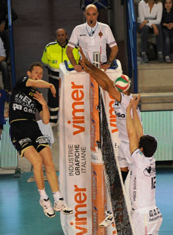 La dodicesima giornata del girone di ritorno della serie A1 Sustenium si è aperta al Pala-Kemon con il minuto di silenzio per ricordare Vigor Bovolenta, centrale ex nazionale che per due anni ha vestito anche la maglia del club umbro, Roberto Rondoni, direttore generale di Latina, Carlo Facchettin, presidente della Fipav Gorizia ed ex arbitro internazionale ed il sergente Michele Silvestri, che ha perso la vita nell’attentato di ieri in Afghanistan. Il match tra Energy Resources San Giustino e Fidia Padova finisce con la netta vittoria per tre a zero degli ospiti che meritatamente mettono in classifica tre punti che consentono loro di portarsi ad una sola lunghezza dagli altotiberini mantenendo aperta la lotta per la salvezza. Nel primo parziale la Energy Resources, quasi sempre in vantaggio, si fa agguantare a quota 19 dai veneti che, trascinati da un incontenibile De Marchi, si portano sull’uno a zero. Nel secondo parziale è San Giustino a fare la partita per gran parte del set ma dilapida i tre punti di vantaggio consentendo ad una più attenta ed incisiva Padova di vincere anche questo periodo. Nel terzo set sono gli ospiti a condurre dall’inizio alla fine. De Marchi, mvp dell’incontro, è il vero mattatore della serata e mette a terra 20 palloni vincenti. Alla Energy Resources sono completamente mancati gli attaccanti e, soprattutto, l’atteggiamento delle ultime partita che aveva consentito loro di risalire la china. Per San Giustino è tutto rimandato all’ultima partita del campionato: la sfida con Piacenza segnerà il destino degli altotiberini che oggi hanno fatto di tutto per complicarsi la vita. Il presidente Claudio Sciurpa ha così commentato al termine: «Credo proprio che i giocatori siano entrati in campo pensando di aver già vinto la partita. L’approccio è stato sbagliato; Rauwerdink ed Urnaut hanno giocato malissimo. Sembrava stessero facendo un allenamento. Non ha vinto Padova, abbiamo perso noi. Ci siamo complicati la vita». Il primo break della partita è per Padova: 0-2. L’errore di Simeonov e l’ace di Patak segnano il pareggio a quota 3. Muro di Finazzi sull’opposto ospite, vantaggio San Giustino. Ancora il capitano della Energy Resources sulla strada di Simeonov: 5-3. Con Urnaut vincente dalla seconda linea, i padroni di casa mantengono il vantaggio al primo time out tecnico. Un doppio Schwarz consente a Padova di raggiungere San Giustino a quota 10. Buovo doppio vantaggio per la Energy: 13-11. Con una buona gestione del cambio palla, gli umbri mantengono i due punti di vantaggio al secondo time out tecnico. Un gran muro di Patak su Schwarz mette fine ad una palla a lungo giocata dalle due squadre: 17-15. De Marchi il muro avversario: 19-18. Koshikawa in battuta per Hein. De Marchi pareggia a quota 19. Muro su Patak per il nuovo vantaggio di Padova, time out Held sul 20-21. De Marchi ancora a segno, il migliore dei suoi in questo primo set: 20-22, ancora un time out per San Giustino. Con l’errore in battuta di Rauwerdink arrivano due set point per la Fidia: 22-24. Urnaut annulla il primo e Montagnani ferma il gioco ma Simeonov non spreca la seconda possibilità: 23-25. Più due San Giustino in apertura di secondo set ma gli ospiti trovano un pronto pareggio. Capitan Finazzi carica i suoi con il punto al centro: 3-2. Fallo fischiato a Simeonov: 6-4. De Marchi passa sempre e la Fidia pareggia. Il muro di De Marchi fa mettere la testa avanti agli ospiti: 6-7. Urnaut mette giù il pallone dell’8-7. Creus murato: 8-9, ma si fa subito perdonare: 9 pari.  Ace di Patak: 13-11. Al secondo time out tecnico i padroni di casa mantengono le due lunghezze di vantaggio non senza fatica. La Energy mura De Marchi: 17-14. Padova accorcia con Simeonov e pareggia grazie al muro su Urnaut: 18 pari time out Held. Creus mura Hein ma poi sbaglia la battuta. Finazzi passa al centro, poi tocca ad Urnaut: 21-19, Montagnani chiama time out. Schwarz sbaglia l’attacco: Energy Resources a più tre. Padova mura Urnaut: 22-21 ma gli ospiti sbagliano la battuta: 23-21. Fallo in palleggio di Patak: 23-22. Pareggia la Fidia,  time out Hel sul 23-23. Ace di Cricca: ingenuità di Rawerdink nel valutare la palla: 23-24. Semenzato mura Urnaut: 23-25. Due a zero per gli ospiti in apertura di terzo set, ma San Giustino pareggia. Prima Schwarz da posto quattro, poi il muro su Patak per un nuovo più due della Fidia. I padroni di casa trovano la forza di raggiungere di nuovo gli avversari. Ma il sestetto di Montagnani sembra più solido ed incisivo ed allunga con il solito De Marchi. In campo, nel sestetto ospite, è rimasto Cricca che, alla fine del secondo set, ha rilevato Hein. Sul 4-7 per PaIdova, Held chiama time out. De Marchi show: è lui a trovare l’8-4 per gli ospiti. Esce Rauwerdink, entra Sammelvuo per San Giustino. I padroni di casa non sono incisivi a differenza degli avversari che sfruttano tutte le occasioni: 8-12. Al secondo time out tecnico Fidia è avanti di quattro punti.  Entra Tiberti per Gonzalez che si è scontrato con Urnaut. Ma il divario tra le due squadre è notevole e a San Giustino mancano gli attacchi delle sue bocche da fuoco. Sul 15-20 Held richiama i suoi per trenta secondi. Padova si esalta in difesa ed in attacco e vince meritatamente. Tre match point per gli ospiti: 21-24. Chiude De Marchi, 21-25.