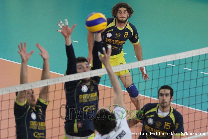 Alla fine arriva un quarto posto per la Ciotti Luciano Autotrasporti Orvieto che nella finalina di venerdì viene superata dai padroni di casa della Nicodemo Lauria per tre ad uno. Una partita più spumeggiante di quella persa giovedì in semifinale contro Saronno in cui gli uomini di Ercolani – Carotta hanno giocato a buoni ritmi offrendo diversi spunti interessanti. Nel primo parziale è Orvieto a guidare e a proiettarsi ripetutamente avanti con una buona efficacia in attacco, al servizio ed anche a muro; i lucani, però, non mollano un colpo e, dopo aver ricucito il gap, riescono a portare la frazione ai vantaggi: nonostante il recupero è comunque il collettivo umbro a chiudere i conti sul definitivo 26 a 28. Seconda frazione invece appannaggio dei locali che piazzando diversi break allungano sin da subito; il team della rupe prova a restare in scia, ma Lauria archivia la pratica sul 25 a 16. Nel terzo set i lucani sembrano poter amministrare controllando sino al 20-14; una grande reazione orvietana, però, permette prima di raggiungere la parità e poi di conquistare addirittura un set-point sul 24-23: il finale è al cardiopalma con i vantaggi che stavolta premiano Lauria sul 26 a 24. Il quarto parziale risulta più equilibrato con soluzioni ficcanti da ambo le parti (14-14); ad ingranare la marcia ci pensa poi la squadra lauriota che stacca allungando sino al 22-15; la compagine della cittadina del Duomo tenta un ultimo assalto, ma il sestetto di casa tuttavia fissa lo score sul 25 a 22 che vale la terza piazza. Sebbene la squadra del presidente Alessandro Caiello non abbia registrato nessun successo la due giorni della final-four è stata comunque una esperienza da ricordare: non capita infatti tutti i giorni, infatti, di poter disputare un evento così importante e già essere arrivati tra le quattro finaliste rappresenta davvero un bel traguardo non solo per la pallavolo orvietana, ma di tutta l’Umbria. Per concludere poi è doveroso rivolgere un plauso alla società di Lauria per la grande ospitalità offerta e più in generale a tutte le compagini partecipanti (Saronno, Montecchio vicentino, e le stesse Lauria ed Orvieto) per aver reso questa competizione un evento emozionante fatto di bella pallavolo e reale sportività. Per la cronaca la coppa Italia è stata alzata poi dalla Pallavolo Saronno che contro Montecchio Maggiore è riuscita in un’incredibile rimonta imponendosi al tie-break dopo aver recuperato uno svantaggio di due set. Questa la graduatoria finale: 1ª Saronno, 2ª Montecchio, 3ª Lauria, 4ª Orvieto.