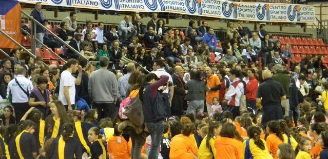 Grandi festeggiamenti al Pala-Evangelisti, il palazzetto perugino, adornato e tirato a lucido per l’occasione, ha ospitato il sesto Mini Gran Galà delle premiazioni organizzato dal Csi Perugia, la manifestazione che conclude il grande circuito del minivolley. Oltre 400 i giovani ragazzi presenti a cui vanno aggiunti i molti genitori intervenuti per l’occasione. La giornata è cominciata alle ore 15 del pomeriggio, con tutti i partecipanti chiamati al classico giro di campo guidati dall’instancabile Paolo Scarponi. Subito dopo i bambini sono stati sistemati sugli oltre venti campi di minivolley preparati da tutti i volontari del Csi, terreni di gioco dove, secondo le categorie: supermini, palla rilanciata, minivolley, ogni squadra organizzata in gironi è stata impegnata. Dopo circa uno ora e mezza di partite, contornate dal tifo e dall’affetto dei genitori sistemati sugli spalti, tutti i giovani atleti sono stati radunati al centro del palazzetto, e lì ad ognuno è stata consegnata una divisa in ricordo della partecipazione unitamente a un palloncino rigorosamente arancione o blu, palloncini che sono stati quasi immediatamente liberati in aria per un tripudio di colori che ha riempito gli occhi e i cuori di tutti i partecipanti. Infine è stato il turno del saluto del presidente provinciale del comitato perugino, Alessandro Rossi, che ha ringraziato e consegnato una targa a tutte le società intervenute complimentandosi con soddisfazione per la riuscita dell’evento e la gioia dimostrata da tutti i bambini che vi hanno partecipato. Le società presenti sono state: Pallavolo Marsciano, Pallavolo Deruta, Marconi Spoleto, Pallavolo Spello, Polisportiva Sant’Angelo, School Volley Perugia, Polisportiva San Mariano, School Volley San Martino in Campo, Pallavolo Passignanese, Braccio Fortebraccio Perugia, Polisportiva Monteluce, Pallavolo San Sisto, Volley Ponte Felcino, Polisportiva Delfino Tavernelle, Polisportiva Agello, Geo Volley Città della Pieve, Vis Fiamenga Foligno, Pallavolo Giglio Foligno, Sirio Volley Perugia, Libertas Perugia, Volley Castel del Piano, Volley Girasole, Volley Ellera, Polisportiva Ponte Valleceppi, Fantasy Volley Valtopina, Nuova Pallavolo Gualdo, Don Bosco Cannara.