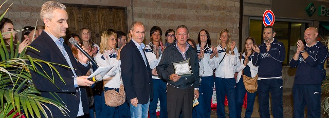 Giovedì è stata la serata delle premiazioni per la Edilizia Passeri Bastia che, insieme alla cittadinanza ha festeggiato la promozione in serie B1 femminile. L’amministrazione comunale ha voluto fare una cerimonia pubblica in piazza Mazzini con tutte le realtà sportive del territorio che si sono particolarmente distinte nella stagione agonistica appena terminata, e tra queste non poteva mancare la rappresentante delle schiacciate. Il collettivo biancoazzurro con in testa il presidente Ubaldo Passeri hanno sfilato in alta uniforme sul palco ed hanno testimoniato con viva voce la soddisfazione per il risultato conseguito, non dimenticando di ringraziare tutte le componenti che lo hanno permesso, in primis gli sponsor ma anche gli sportivi che sempre numerosi hanno seguito le gesta della squadra al palazzetto di viale Giontella. Al ricevimento voluto dalle massime cariche istituzionali che hanno omaggiato di una targa al merito la società sportiva erano presenti tante persone, a testimonianza del grande eco riscosso dal successo delle ragazze della pallavolo. Al termine della cerimonia è stato fatto un brindisi e poi, sulle note della musica, si sono lanciati tutti in balli improbabili. A chiusura della cavalcata trionfale ecco le parole ed i ricordi delle campionesse sulla promozione.
