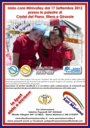 Con l’avvicinarsi dell’inizio della stagione agonistica sono cominciati per tutte le squadre della Polisportiva San Mariano gli impegni in palestra, partiranno invece lunedì 17 settembre i corsi di minivolley, per il quale le iscrizioni sono già aperte, il minivolley rivestirà un ruolo di sempre maggior importanza visti gli obiettivi prefissati dalla società. Ottenuto il marchio di qualità argento dalla Fipav per il biennio 2012-2013 nel settore giovanile, lo status di scuola federale di pallavolo e la collaborazione nelle scuole primarie di San Mariano, Corciano, Mantignana e Castel del Piano, la Polisportiva San Mariano assieme alla Virtus Castel del Piano hanno fin ad oggi dimostrato di possedere ottime capacità per la crescita delle proprie atlete, rendendola così una delle realtà di maggior rilievo del panorama pallavolistico regionale. Il gruppo allenatori sarà coordinato dai responsabili Roberto Scaccia direttore della Scuola di Pallavolo, Sabrina Paparelli e Massimiliano Urbani con i quali collaboreranno i tecnici Andrea Mezzasoma, Lorenzo Castellini, Barbara Dormentoni, Chiara Francisci, Valentina Hromis e Giorgia Gentili. Oltre alla squadra di serie B1 femminile, che sta portando a termine la fase di preparazione atletica in palestra, dove si è già evidenziato uno buono spirito di abnegazione e collaborazione fra le atlete più esperte e le giovanissime, la società sarà rappresentata da altri dodici gruppi: la serie D costituita da atlete esclusivamente under 18 ed under 16, due seconde divisioni, una under 18, due gruppi under 16, una under 14, due squadre under 13 e tre under 12, più quattro gruppi di mini volley nelle palestre di Castel del Piano, Ellera e Girasole (San Mariano). Da quest’anno il club rossoblu ha instaurato una collaborazione con una nutrizionista che informerà atleti e genitori sulla corretta alimentazione ai fini dello sport per il giusto connubio fra vivere sano e attività sportiva. Lo staff dei fisioterapisti Sauro Valloni ed Emanuele Volpi oltre che per la prima squadra sarà anche a disposizione di tutte le rappresentative, così come il preparatore atletico Pietro Leonardi.