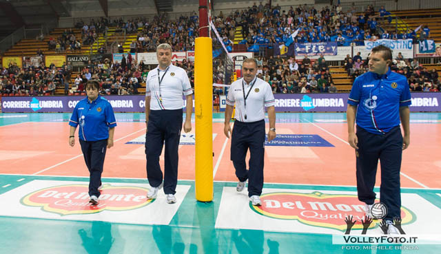 Domenica scorsa a Perugia, al Pala-Evangelisti, c’è stata una festa tutta particolare. La festa della pallavolo della mia Umbria. Una festa giocata direttamente in campo, con il derby di A1 maschile tra Perugia e San Giustino. Oltre 3’000 spettatori nelle tribune hanno festeggiato i propri beniamini con bandiere e tamburi. Massima correttezza in campo ed altrettanta nelle tribune. In curva i bianconeri della Sir, in tribuna, alle mie spalle, i colori biancoazzurri della Vivi Altotevere. Prima della gara i due presidenti delle società, Gino Sirci per quella di casa ed Aldo Nocentini per gli ospiti, si sono scambiati dei doni a mo di gemellaggio tra i due sodalizi. Durante la gara le due squadre non si sono mai risparmiate, tanto agonismo in campo, grandi giocate ed anche errori, dovuti all’emozione. Molti giocatori non avevano mai giocato un derby… la tensione era alta. Alla fine è stata una bella emozione anche per i direttori di gara. A parlarne è Simone Santi che ha diretto da seggiolone: «Io ed il mio caro amico Fabrizio Saltalippi siamo stati chiamati a dirigere due squadre della nostra provincia. All’inizio la cosa ci sembrava un po’ strana, poi invece abbiamo capito che saremmo entrati, in qualche modo, nella storia dello sport della nostra regione. Nella settimana precedente il derby ed anche nel post derby i quotidiani locali ed i canali televisivi umbri hanno dato un grande risalto non solo alla partita, ma anche agli arbitri. Devo dire che c’è stato un grande rispetto da parte delle due squadre per il nostro lavoro. In 2 ore e 31 minuti di gara non c’è stata una protesta e soprattutto dopo qualsiasi nostra decisione i giocatori e le panchine hanno sempre condiviso quello che avevamo deciso. Per una gara terminata 3-2, (15-12) al tie-break, non capita tutti i giorni. Grazie alle società, ai giocatori per la loro spirito sportivo, alla federazione italiana pallavolo che mi ha concesso questo grande onore».