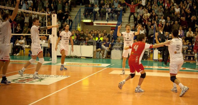 E’ stato uno spettacolo degno di altre categorie quello visto ieri al Pala-Ioan tra Gherardi Svi Città di Castello ed Atripalda in serie A2 maschile. Gli umbri hanno battuto per tre ad uno i rivali campani e li hanno cacciati indietro di altri tre punti, ora sono otto le lunghezze che dividono la formazione tifernate da Atripalda che è stata superata al secondo posto dal Sora. Ed allora ancora una volta il popolo biancorosso ha potuto gioire con i propri beniamini, autori di una prova monstre, e festeggiare per l’undicesima volta di fila. Lo ‘scoglio’ meridionale è stato quindi superato, come si augurava la curva di Seconda Giovinezza, vicina come non mai alla squadra tifernate, nello striscione esposto ad inizio partita. 23 punti di Van Walle, 17 di Fromm, 18 di un fantastico Rosalba che ha girato le sorti del secondo set nel finale al cardiopalma: queste sono le cifre di una squadra che ha attaccato col 55% in un big match come questo, roba da far paura! Parte proprio da questo dato l’analisi di Andrea Radici: «Le percentuali dell’attacco nostro dimostrano che, contrariamente alla partita con Molfetta nella quale non eravamo riusciti a compensare le difficoltà della ricezione dovute ad avversari che spingevano forte al servizio, i nostra attaccanti hanno avuto la capacità di gestire al meglio le situazione difficili, Questo è stato uno degli aspetti che ha portato i tre punti, malgrado le difficoltà del servizio di Atripalda, variato ed efficace. E’ stata una partita bella, giocata dalle due squadre che esprimono la migliore pallavolo della categoria in questo momento, come s’è visto ieri. La soddisfazione è anche data dal fatto che siamo riusciti a mettere in pratica alcuni aspetti offensivi che avevamo aggiustato in settimana, per cui la prestazione in campo non ha fatto altro che confermare il buon lavoro degli allenamenti». Il presidente Arveno Ioan guarda già avanti: «L’obiettivo è quello della qualificazione alla finale della coppa Italia che sarebbe un traguardo prestigioso per società e città, poi a Milano chi vivrà vedrà. Mi appello a tutto il pubblico di Città di Castello per la gara del 26 dicembre, ognuno deve portare al palazzetto un amico o un conoscente per incitare la squadra a raggiungere questo traguardo».