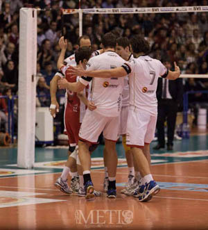 Non smette di vincere la Gherardi Svi Città di Castello che viola in tre set il Pala-Serenelli e coglie la sua ventesima vittoria su ventuno incontri di serie A2 maschile. Niente sconti nemmeno per la Pallavolo Loreto che deve cedere le armi di fronte alla truppa di Radici che mette a segno i soliti quindici muri in tre set (quattro Visentin e Braga). Si comincia con Città di Castello che ha in campo Jacopo Massari al posto di Rosalba e Loreto che schiera Belcecchi al posto dell’infortunato Ranghieri. Durante la gara le tifoserie si sono scambiate più volte attestati di stima. L’avvio del match è di marca loretana con i padroni di casa che vanno avanti per 4-1 e poi per 7-3. Ma da quale momento i biancorossi di Radici tornano a farsi sentire col servizio flottante di Braga e con i punti di Fromm e Van Walle. In un batter d’occhio la capolista vola sul 12-15 ed allora l’allenatore tifernate fa assaggiare il Pala-Serenelli anche a Carminati. Fromm non trova il campo in un paio di volte, tuttavia gli ospiti tengono il vantaggio fino al 21-23 quando Carminati sbaglia l’attacco ma l’invasione di Moretti regala tre palle set ai biancorossi. Esce anche Visentin per Sartoretti, Carminati fallisce la prima palla set sbagliando il servizio ma l’errore di Marchiani dà il primo set alla squadra del presidente Ioan. Coach Radici mantiene in campo Carminati che contribuisce all’1-3 iniziale degli umbri assieme al muro di Visentin. I tifernati vanno sul 3-5 con un bel muro su Peda che poi si riscatta con la palla del 4-5 ma a poco serve perché Van Walle a muro manda le due squadre al secondo time out tecnico sul 4-8. Ci sono sempre tre punti di vantaggio per gli umbri (7-10) che tuttavia viene raggiunta da Loreto col muro sul pallonetto di Van Walle (13-13). Si riscatta subito l’opposto belga col muro su Belcecchi (13-15) e col punto del 14-16 (secondo time out tecnico). Al rientro ace di Fromm (14-17) e poi due punti di fila dei ragazzi di Fracascia (16-17) ricacciati prontamente indietro (16-19). Rientra Massari per Fromm e va in campo anche Sartoretti che non trova la misura del servizio (21-23) ma Braga ferma Moretti e ci sono tre palle set per la squadra di Radici che mettono il sigillo al secondo set con il solito Van Walle. Terzo set che inizia con Franceschini in campo al posto di Braga e Caporaletti, come già nel finale di secondo set, per i loretani al posto di Spescha. Van Walle apre subito con l’ace dello 0-2, l’errore di Loreto dà l’1-5 ai tifernati. Fracascia ferma il gioco ed ottiene un paio di punti (3-5) ma al primo time-out tecnico la Gherardi Svi tiene il vantaggio con Piano (5-8). Va in campo anche David Lensi per Federico Tosi (6-10) e Franceschini non fallisce il punto del 6-11. C’è un ace di Van Walle (9-15) e il punto di Carminati per l’11-16. Lo stesso giovane martello bergamasco spara a terra la battuta vincente dell’11-17 ed allora Radici chiama in campo Luca Sartoretti al posto di Van Walle. Ormai non c’è più partita (12-20), Sartoretti mette a segno il 13-22, l’ottimo Carminati fa lo stesso (14-23). Caporaletti non trova il campo (15-24) e la chiusura è affidata ancora a Luca Sartoretti.