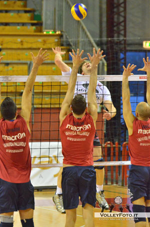 L’ultimo test che precede l’esordio nei play-off scudetto è una serie di esperimenti per la Sir Safety Perugia che schiera in campo un assetto rivoluzionato e mostra un gioco non proprio brillante ma che è migliorato col passare del tempo. Si è trattato comunque di un test probante quello contro la Sieco Service Ortona, formazione di categoria inferiore ma molto ben messa in campo. A cinque giorni dall’esordio nella post season gli umbri cercano la miglior condizione e le strategie più opportune per contrastare Piacenza (che in questo fine settimana si gioca la finale di Challege Cup). Il tecnico Kovac presenta alcune novità nel sestetto con l’utilizzo di Edgar da centrale e di Petric da opposto, soluzioni alternative in fase di valutazione, nella diagonale di posto-quattro oltre a capitan Vujevic c’è Schwarz. I padroni di casa cominciano timorosi e vanno subito sotto prendendo due murate (0-4). Il tempo di prendere le misure e Petric getta le basi della rimonta che permette l’aggancio sul 13-13. Le squadre si equivalgono per un po’ ma è ancora il muro di Muagututia a far ripartire gli ospiti che si mantengono avanti di un break sino al 21-23. La difesa di Giovi consente di salvare diversi palloni che Petric trasforma in attacco (62%), il suo nono pallone personale messo a terra vale il vantaggio. Il secondo set riparte nel segno degli abruzzesi che con Cetrullo trovano varchi a ripetizione prendendo il comando (5-7). I meccanismi dei block-devils in seconda linea non sono molto oliati e sono gli spunti in individuali di Vujevic ed Edgar a non far affondare i perugini che in ritardo di tre lunghezze trovano lo spunto giusto per piazzare il sorpasso (19-18). L’arrivo è in volata, Kovac getta nella mischia Van Harskamp e Tamburo ma stavolta i bianconeri falliscono le due occasioni del raddoppio e vengono puniti da Muagututia che pareggia i conti. Nella terza frazione Alletti lascia il campo a Semenzato ma gli uomini del presidente Sirci sono più sciolti e forzando in battuta, ma anche sfruttando i numerosi errori avversari, riescono a scavare un piccolo solco (15-9). Daldello stenta a trovare l’intesa al centro mentre battuta e muro funzionano e l’apporto del neo entrato Di Meo non riesce a fermare l’avanzata perugina che torna in vantaggio con una bomba da seconda linea di Petric. Il quarto frangente prende subito una piega decisa con il muro della Sir che sbarra la strada ad Ortona (8-3). Un passaggio a vuoto però rimette tutto in discussione sul 10-10 ma poi la spalla calda di Schwarz riporta il divario a quota di sicurezza (20-14). La differenza in campo diventa evidente con l’avvicendamento delle seconde linee e Perugia trionfa. E’ stato poi disputato anche un quinto set nel quale la Sieco si è imposta (18-25).