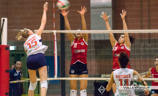 La Battistelli Viserba merita senz’altro la posizione in classifica che occupa in serie B1 femminile, se poi commetti quaranta errori in tre set, la forbice dei valori in campo non può fare altro che allargarsi. È questa la sintesi della partita della Sgm Graficonsul San Mariano, che ha avuto la forza di resistere alla prima della classe per un set e mezzo. Anzi ad onore della cronaca nel primo parziale le umbre hanno avuto in mano anche due set-point senza però riuscire a sfruttarli. Le padrone di casa partono con una formazione diversa dal solito con Natali in posto-due opposta a Peluso, in zona-quattro confermate Da Col e Babbi, al centro della rete sono schierate Cheli e Guidi, Guglielmi libero. Dalla parte opposta le romagnole partono con Morolli in palleggio e Miola opposta, Montani e Argentati in zona-tre, Zuccarini e Masoni in banda con Arcangeli libero. Il primo set parte in un iniziale equilibrio quando una serie di cinque errori consecutivi delle rossoblu permette alle ospiti di prendere il largo e costringe Scaccia a fermare il gioco, al rientro in campo Cheli e Natali accorciano le distanze, il servizio delle locali non consente a Morolli di innescare le proprie centrali, il gioco diventa scontato e le difese si esaltano. Si procede punto a punto e si arriva alla seconda sosta tecnica con San Mariano avanti di una lunghezza, il vantaggio viene subito incrementato con Da Col che mette a terra tre palloni in rapida successione. Qualche imprecisione di troppo permette il ritorno di Viserba ma il primo set-point se lo conquista Babbi, poi è Cheli a mettere a terra la palla che vale il 25-24; nel momento cruciale tre errori consecutivi consegnano il set alle ospiti. Al cambio di campo si riparte con formazioni invariate, ancora una partenza in salita per la Sgm Graficonsul che riesce a recuperare e portarsi di nuovo in vantaggio di due lunghezze alla seconda sosta tecnica. A questo punto un filotto di otto punti consecutivi delle viserbesi, grazie al turno al servizio di Morolli, fa prendere il largo e vincere facilmente il parziale. Il terzo set vede Rimini prendere in mano subito le redini del gioco e sfruttare al meglio le tante imprecisioni di San Mariano, la consapevolezza della propria forza unita alla voglia di mantenere il distacco dalle dirette concorrenti consegna alle romagnole l’incontro.