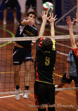 Il primo atto della finale play-off di serie C maschile consegna la vittoria alla Emma Villas Chiusi che gioca una partita meno brillante del solito ma riesce a compensare le difficoltà che si presentano con grande mestiere. In un Pala-Coopersport gremito in ogni ordine di posto la rivale targata Grifo Volley Perugia parte contratta ma poi migliora col passare del tempo e si rende molto pericolosa costringendo i biancoblu a dare fondo a tutte le loro risorse. Mai vista tanta gente nell’impianto di via Poggio Gallina da quando fu la nazionale a richiamare il grande pubblico per un evento di interesse generale che a distanza di anni sta coinvolgendo una intera comunità. Si è dovuto stavolta fare i conti con la sfortuna in questa delicata ed importante fase della stagione, durante gli esercizi di riscaldamento pre partita Riccardo Lione avverte una fitta al tendine d’Achille ma stoicamente scende in campo lo stesso, il perdurare ed aggravarsi della sofferenza lo costringe però ad uscire a metà del primo set; nella seconda frazione invece i padroni di casa fanno entrare Alessandro Marchettini che accusa un dolore ad ginocchio e viene prontamente richiamato in panchina. Il set d’apertura è l’unico ad essere privo di storia. Lione porta avanti i suoi ma sul 10-7 lascia il posto a Santilli. Funziona tutto dal lato dei locali che con la battuta scavano il solco (18-11). Bittoni (nove palle a terra) è incontenibile in fase offensiva e Bastianini sigla il vantaggio. La ripresa registra maggior equilibrio, Benicchi riceve bene ma il resto della squadra accusa un calo di rendimento ed i perugini restano in scia. Sul 20-18 Mastroianni propizia il break di quattro punti consecutivi ed opera il sorpasso. Decisivo ai fini del risultato sono gli affondi di Bastianini (otto punti) che piazzano il colpo di reni sotto lo striscione incamerando il raddoppio. Marchettini nella fugace apparizione del parziale precedente si è fatto male e nel terzo periodo la Emma Villas è praticamente priva di cambi. Perugia non molla con Urbani che al servizio raccoglie quattro ace prima portando sul 21-23 e poi riducendo le distanze. Gli ospiti acquistano fiducia e riprendono la quarta frazione forzando in attacco su tutti i palloni. Dopo poche azioni è Camardese a fluidificare il gioco spingendo sul +5 ma dalla parte opposta la risposta di Margaritelli e Urbani è pronta (12-12). La seconda accelerazione è procurata da Sabatini che proietta nuovamente a +4 ma il muro perugino trova le misure e riapre (22-21). Nel momento importante Bittoni richiama tutte le forze per assestare il colpo del kappao. Vittoria importante dunque, ottenuta contro una grande avversaria che si è fatta onore, ma c’è apprensione per valutare il responso del bollettino medico di Lione e Marchettini, le loro condizioni di salute saranno esaminate nel giro di poche ore. Ai ragazzi del presidente Bisogno manca un’altra affermazione per spalancare le porte del paradiso, ancora un successo e potrà essere raggiunta la serie B2.