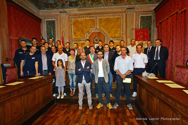 Venerdì è stata una serata di premiazione per la Emma Villas Chiusi che, ha raccolto l’invito delle istituzioni per festeggiare la promozione in serie B2 maschile. L’amministrazione comunale ha voluto fare pubblicamente i complimenti ad una realtà sportiva che si è particolarmente distinta nella stagione agonistica appena terminata, invitando tutti i protagonisti ad una piccola cerimonia che si è tenuta nella sala del consiglio ed omaggiando di una pergamena ogni singolo componente della squadra. Sono state ringraziate tutte le componenti che hanno permesso di raggiungere questo traguardo, in primis gli sponsor ma anche gli sportivi che sempre numerosi hanno seguito le gesta della squadra al palazzetto di via Poggio Gallina. Il collettivo biancoblu in alta uniforme è stato ricevuto da una nutrita delegazione municipale con in testa il sindaco Stefano Scaramelli che ha detto: «E’ con vero piacere che l’amministrazione comunale ospita per un riconoscimento formale e simbolico la società sportiva che ha conquistato il diritto a partecipare ad un campionato nazionale e che porterà in giro il nome di Chiusi per l’Italia. Una squadra che, mi piace sottolineare, ha sempre mantenuto un certo stile e che dunque rappresenta degnamente la nostra città. Per la prossima stagione agonistica vorrei lanciare l’idea di creare degli eventi ad ogni appuntamento interno di campionato in modo che sia un sabato di festa soprattutto per i bambini che trovano nello sport dei valori importanti con cui crescere». Ha preso poi la parola il presidente del sodalizio Vitt Chiusi Massimiliano Barbanera che ha aggiunto: «Ringraziamo l’amministrazione per questo invito, negli ultimi anni siamo stati più volte ospiti a palazzo comunale per ricevere dei riconoscimenti, è un sintomo che ci stiamo muovendo bene. Si diceva che eravamo obbligati a vincere, ma non è mai facile farlo, per cui complimenti ai nostri ragazzi». Lo sponsor Giammarco Bisogno: «Raccolgo l’invito del sindaco per fare un progetto interessante e riuscire ad attivare delle collaborazioni che possano dare ancor più risalto alla nostra attività. Il recente ingaggio di un team manager come Mechini sta a dimostrare che vogliamo fare le cose seriamente, ambire a migliorarsi è lo stimolo che deve essere sempre presente in noi». Il coach Massimo Marchettini: «Sono orgoglioso di aver raggiunto questo traguardo nella mia città, è davvero una bella sensazione aver coinvolto tante persone in un crescendo di emozioni che resteranno indelebili nell’album dei ricordi». Il capitano Simone Camardese: «E’ stata un’annata bellissima in una realtà che ci ha accolto a braccia aperte, anche coloro come me che non sono di Chiusi si sono sentiti parte integrante del territorio».