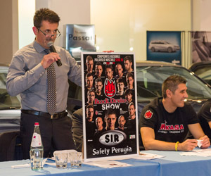 Una serata davvero unica quella di ieri per la Sir Safety Perugia! Dopo il saluto istituzionale della mattina, i block-devils sono infatti stati i protagonisti di due appuntamenti voluti dalla società bianconera per presentare a sponsor, tifosi e organi di informazione la nuova squadra che domenica inizierà il suo cammino in serie A1 maschile. Tutto è partito alle ore 19 presso l’Autocentri Giustozzi di via Settevalli dove capitan Vujevic e compagni sono stati ospiti, assieme ai quadri dirigenziali, del nuovo partner bianconero per un gustoso e piacevole aperitivo. I giocatori sono stati presentati uno ad uno dal tecnico Kovac ed si sono concessi alle domande dei giornalisti presenti. Con l’occasione il presidente Sirci ha svelato la nuova splendida e come sempre particolare locandina, che campeggerà per le vie cittadine in occasione degli incontri casalinghi della Sir, ed i nuovi soprannomi per gli ultimi arrivati in casa Perugia. I tifosi presenti hanno preso bene nota dei nickname dei loro beniamini, da ‘Cannibal’ Buti a ‘Veleno’ Barone, da ‘Lucky Luke’ Della Lunga a ‘Tritolo’ Della Corte, da ‘Ciupko’ Cupkovic a ‘Mito’ Mitic finendo con ‘Faro’ Fanuli. Tutti appellativi come al solito particolari e che hanno strappato l’applauso e l’approvazione ai ragazzi ed alla platea presente. Al termine dell’aperitivo, la carovana si è spostata presso il ristorante vespertino dell’hotel La Meridiana dove si è celebrata la consueta cena di presentazione. C’erano oltre 170 persone, tra sponsor, tifosi, autorità ed amici della Sir per una serata di festa e di allegria che si è protratta fino a mezzanotte. In una ambiente sereno e familiare, con la solita ottima conduzione della serata di Marco Cruciani e con le riprese delle telecamere della Sm Broadcast di Stefano Mezzanotte, è stata la verve del presidente Gino Sirci a farla da padrone con i presenti che hanno potuto toccare con mano, in particolare i nuovi arrivati, l’entusiasmo che aleggia intorno ai bianconeri pronti da domenica a calcare il palcoscenico più prestigioso del volley nazionale. C’erano tanti partner della società sportiva, le autorità federali con il presidente provinciale Fipav Luigi Tardioli, c’era ovviamente la squadra al completo con tutto lo staff di Kovac, c’erano Marco Taba ed Andrea Piacentini, rispettivamente responsabile tecnico e collaboratore del settore giovanile. Non sono mancato nemmeno i tifosi bianconeri, gli ‘Nguastiti, da sempre al fianco dei bianconeri con Alvaro Busti in prima fila. E poi c’erano tanti amici, simpatizzanti e semplici amanti della pallavolo che seguono con passione le sorti della Perugia pallavolistica. Tra ottima cucina e commenti vari, la serata ha vissuto dei tanti brindisi lanciati, delle parole degli intervenuti, delle tante attestazioni di stima rivolte alla società sportiva. Il clou, sempre sotto l’obiettivo delle telecamere della Sm Broadcast, è stato quello della presentazione dello staff tecnico di Kovac, confermatissimo, e dei giocatori. Applausometro a decibel altissimi per i vecchi, da capitan ‘Lupo’ Vujevic a ‘Drago’ Petric, da ‘Belva’ Giovi ad ‘Iron’ Semenzato. Ma tanti consensi hanno ricevuto i nuovi acquisti, tutti colpiti dalla festa in atto. Al termine della serata, dopo il ringraziamento del presidente ai presenti ed in particolare ai tanti sponsor che hanno deciso di investire anche questa stagione sulla squadra perugina, e dopo il tradizionale taglio della torta, ovviamente griffata block-devils, l’ultimo brindisi e l’appuntamento per tutti al Pala-Evangelisti per seguire da vicino e tifare la Perugia che cerca gloria in serie A1.
