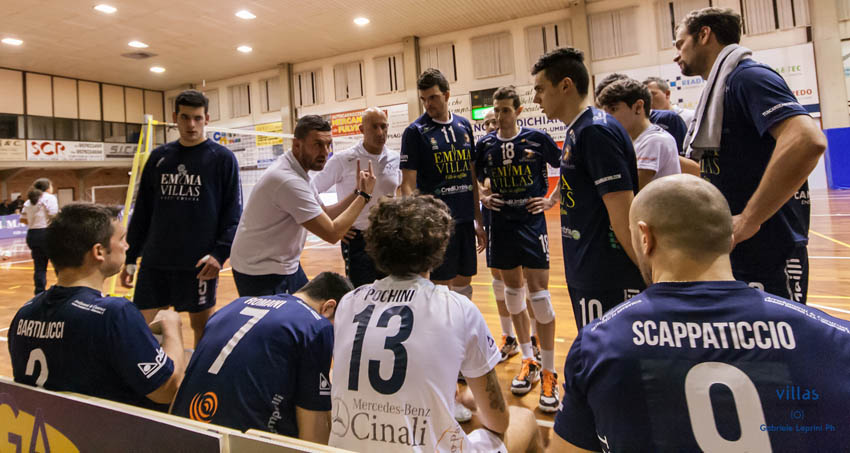 gli uomini della Emma Villas Chiusi di serie B2 maschile durante un tempo