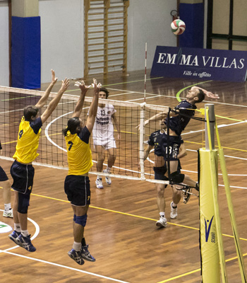 Troppo in palla la Emma Villas Chiusi per immaginare un finale diverso da quello che i biancoblu hanno scritto in trasferta sabato sera centrando l’ottava vittoria consecutiva del campionato di serie B2 maschile. Ha fatto quello che ha potuto la Netoip.com Collemarino ma non le è stato possibile tenere testa ad una rivale di qualità come quella toscana che ha messo alle corde i rivali col servizio ed il muro. Al fischio d’inizio in campo qualche novità tra i marchigiani mentre gli atleti chiusini sono quelli annunciati; l’accelerazione degli ospiti è bruciante, sempre avanti grazie anche agli errori altrui. Nella seconda frazione i marchigiani tirano fuori gli artigli e cercano di tenere testa alla formazione ospite che però non molla con un Romani cinico in attacco e con un muro che gli sbarra la strada ripetutamente trovano la via del raddoppio. Il terzo set è sempre condotto facilmente, grazie alla buona efficacia di Braga e Di Marco in attacco e Bittoni in battuta, la partita perde progressivamente di vigore e la Emma Villas vola verso il traguardo. Partita temuta alla vigilia da Chiusi, ma risolta agevolmente grazie ad una prova concreta e senza sbavature da parte della squadra, i ragazzi del presidente Bisogno hanno condotto la gara con lucidità fino alla fine. Da segnalare un piccolo infortunio per lo sfortunato Roberto Braga, una distorsione alla caviglia che si spera non abbia ripercussioni negative nella condizione del centrale che già aveva dovuto saltare diverse partite ad inizio stagione. Adesso la concentrazione passa al prossimo avversario, sabato al Pala-Coopersport arriva la Polisportiva Roma 7 e sarà una partita importante dato che gli scontri diretti Spoleto – Grosseto e soprattutto M.Roma – Grottazzolina potrebbero avvantaggiare di fatto i leoni chiusini e migliorare l’attuale quarto posto della graduatoria.
