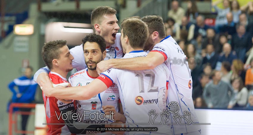 Non si è ancora spenta l’eco del derby vinto a Perugia tra i tifosi dell’Altotevere Città di Castello che stanno comunque già pensando di sostenere la squadra in gara-uno dei quarti di finale dei play-off in programma giovedì alle ore 20,30 al Pala-Banca di Piacenza con diretta streaming su www.sportube.it. Intanto anche i giornalisti specializzati di pallavolo hanno lodato il campionato della formazione di Radici, autentica sorpresa della stagione: sulla Gazzetta dello Sport di oggi, anche nella versione on line, Gian Luca Pasini affibbia un 8,5 ai ragazzi biancorossi definendoli rivelazione del 2014. Ma la testa di tutti è già al play-off di dopodomani contro Piacenza, formazione di grandissimo spessore tecnico e fisico, che ha vinto la coppa Italia poco più di due settimane fa a Bologna. Andrea Radici ha ripreso gli allenamenti fin da lunedì pomeriggio per preparare al meglio la doppia sfida contro il sestetto di Monti. E nel contempo la società del presidente Arveno Ioan è impegnatissima per organizzare al meglio la gara due di domenica 30 marzo (ore 18) al Pala-Kemon, che sarà senz’altro gremito di tifosi. Queste le modalità di prelazione e prevendita dei biglietti: gli abbonati (tribuna numerata e poltroncine numerate) potranno esercitare il diritto di prelazione per l’acquisto del biglietto corrispondente al posto già occupato entro le ore 19,30 di mercoledì prossimo 26 marzo al palasport di via Anconetana. I prezzi dei biglietti non subiranno variazioni e saranno pertanto gli stessi praticati nel corso della stagione. Gli abbonati della gradinata e i residenti nella zona Altotevere potranno esercitare il diritto di prelazione sull’acquisto del biglietto entro le ore 18 di venerdì 28 marzo. La società informa che tutti quelli che effettueranno le prenotazioni dei biglietti dovranno ritirarli entro le ore 16,30 di domenica. La biglietteria dell’impianto sportivo di via Anconetana sarà aperta anche domani, venerdì dalle ore 18,30 alle ore 19,30 e sabato dalle ore 14,30 alle ore 16. Sarà possibile acquistare i tagliandi di gradinata e curva non numerati anche presso Dimensione Grafica in corso Vittorio Emanuele e Game Hair in Corso Cavour a Città di Castello e il bar Moraldi a San Giustino.