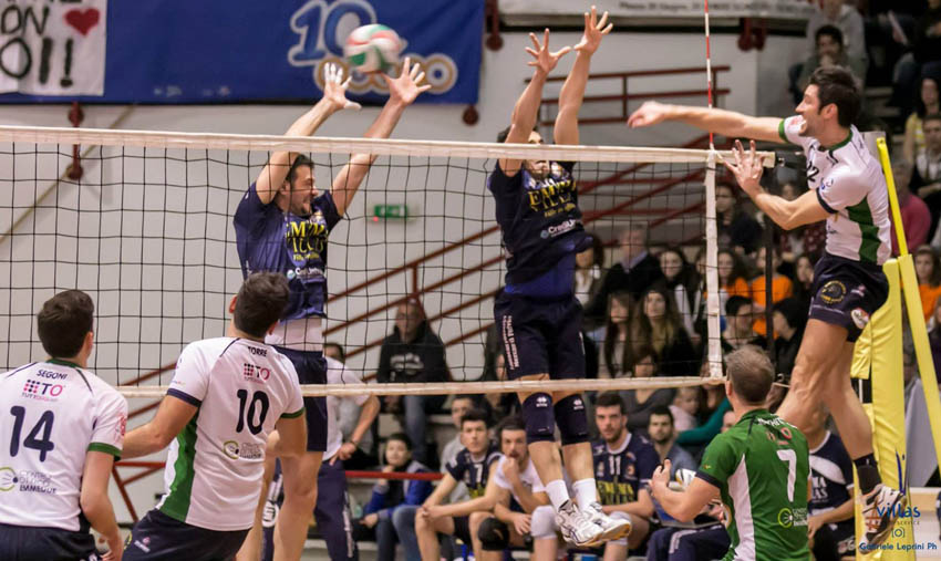 La Emma Villas Chiusi si conferma tra le mura amiche del Pala-Coopersport nel duello al vertice della classifica di serie B2 maschile e conferma di essere la squadra più in forma del girone, superando anche l’ennesima tegola stagionale che si manifesta con l’infortunio alla spalla destra dello schiacciatore Grassano (lussazione e probabile campionato finito per lui), sul 17-17 del primo set. Un evento che ha scosso la squadra biancoblu e moltiplicato gli sforzi che sono servito a battere la Monini Spoleto e restituirgli il tre a zero subito all’andata. Una partita in cui ha pesato enormemente la vittoria del primo set, terminato dopo una battaglia di tre quarti d’ora e con proteste degli oleari che in due occasioni si sono sentiti penalizzati dalle decisioni arbitrali. In avvio c’è equilibrio (9-9). La differenza la fa ìil fondamentale del servizio che con Torre propizia quattro punti consecutivi e porta gli ospiti avanti (11-14). I chiusini si rimboccano le maniche e rimettono in asse il punteggio ma sul 17-17 in una fase di attacco Grassano s’infortuna e deve abbandonare il campo. Al suo posto entra Pasquini, le difese biancoverdi permettono a Vigilante (undici palle a terra nel set d’apertura) un ulteriore strappo che si ferma sul 20-22. Si procede ad oltranza, le squadre sono fallose nella rimessa in gioco ma in attacco vanno forte. Spoleto si salva col muro in un paio di occasioni e alla fine è Romani con un ace ed una bomba dalla seconda linea a decretare il cambio di campo. Si ricomincia con stessa intensità, i liberi Pochini e Marchetti sono su tutti i palloni e mettere palla a terra è difficile per chiunque (6-5). Qui è ancora la difesa a mettersi in evidenza, quella dei leoni è impenetrabile, tutti sono attenti e consentono a Scappaticcio di sbloccare mandando a segno i compagni (13-7). Torre prova a far reagire i suoi ma tutto è difficile e le distanze rimangono pressoché immutate (18-12). Il ritmo cala ed il primo tempo diventa efficace da ambo i lati della rete, Vigilante si mette in mostra e trova qualche varco per ridurre il gap (22-20). È ancora Romani (nove palle vincenti) a concludere con gli ultimi tre punti che portano la sua firma. Nella terza frazione partono meglio gli oleari che con Lattanzi si spingono sul 2-5. Qui sono quattro punti consecutivi dei chiusini a rovesciare (6-5). L’inerzia è a favore dei toscani che però accusano qualche passaggio a vuoto e e consentono ai rivali di mantenersi in linea di galleggiamento (16-16). Dopo il secondo time-out tecnico le scelte ponderate di Scappatico trovano tutte risposte vincenti e Braga in veloce spinge sul 21-18. Gli spoletini gettano nella mischia Trombettoni ma è tardi, il sigillo finale lo appone ancora Nicola Romani (mvp della serata). Il risultato consolida il secondo posto della Emma Villas che resta in piena zona play-off, staccando la Monini che scivola al quarto ed esce momentaneamente dalla zona che garantisce gli spareggi per la promozione.