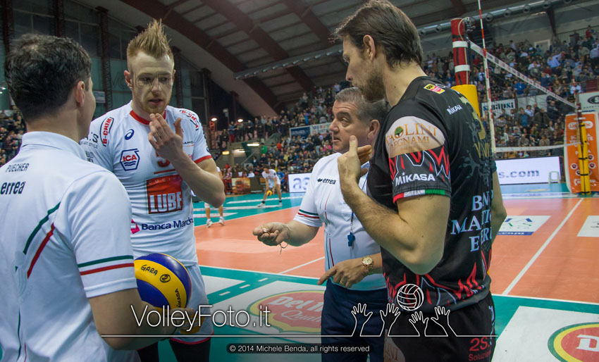 i capitani Ivan Zaytsev e Goran Vujevic al sorteggio prima del fischio d’inizio della partita tra Macerata e Perugia
