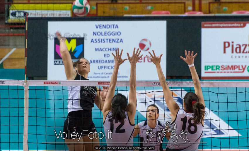Dopo la sosta pasquale la Gecom Security Perugia torna il rullo compressore delle migliori giornate, travolgendo tra le mura amiche del Pala-Evangelisti per tre a zero il San Michele Firenze che, posizionata a metà classifica in serie B1 femminile, oramai non ha più nulla da chiedere alla stagione. Perugia rimane saldamente al terzo posto, in zona play-off, con gli stessi punti di Olbia. Le ragazze di Bovari partono subito fortissimo, trainate da una imprendibile Cristina Cruciani che allunga al primo time-out tecnico (8-4). Miccadei prova ad accorciare la distanze, ma Tosti risponde a tono e porta le proprie compagne avanti fino al 17-11. Due ace in battuta di Puchaczewski allungano ipotecando la conquista del set (19-11), che la stessa va poi a chiudere con un bel diagonale. Alla ripresa coach Alderani inserisce Cheli su una opaca Torrini che, dopo un avvio sottotono, dimostra di tenere bene il campo, mettendo a tratti in difficoltà le padrone di casa. Una scatenata Valentini e una superlativa Tosti, best scorer di giornata, trascinano le proprie compagne alla conquista del secondo parziale. Anche nel terzo frangente le padrone di casa prevalgono in tutti i fondamentali. Cecato continua a preferire gli schiacciatrici di banda rispetto alle centrali, lasciando alle sorelle Cruciani il compito di arginare gli attacchi avversari. Ancora Tosti e Puchaczewski sono le bestie nere delle toscane, permettendo alle perugine di chiudere la partita. Le due giornate conclusive del girone di ritorno saranno due derby, il primo in casa sabato prossimo alle ore 17,30 contro Bastia Umbra che oramai, fuori dai play-off, non ha nessun obbiettivo da centrare, e l’ultima giornata in trasferta a Trevi, che invece deve ancora lottare per la permanenza nella categoria e quindi partita delicatissima. La squadra del vice-presidente Bartoccini, dovrà ancora tenere altissimo il livello di attenzione per consolidare o migliorare la situazione in classifica in vista del caldissimo finale di stagione.