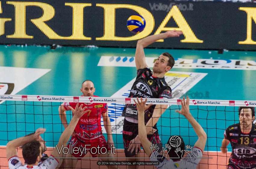 Una partita di pallavolo non è finita sino a quando una squadra non vince tre set. È questo in sostanza il dato che emerge nella prima sfida della serie di finale maschile nella quale la Sir Safety Perugia ha forse pagato lo scotto di un duello di semifinale che ha messo a dura prova le energie fisiche e mentali. Guai a dare per spacciata una rivale come questa; capace di risorgere da un tremendo uno due ed imporsi al tie-break. Il merito della Cucine Lube Banca Marche è quello di non essersi mai persa d’animo, nonostante una pessima gestione della battuta e malgrado il numero di errori più elevato dei propri avversari. Anche a muro i marchigiani hanno spadroneggiato con Bartosz Kurek (mvp della gara) assoluto protagonista, il suo ingresso è stato determinante per domare gli spregiudicati ragazzi del presidente Gino Sirci. Si può ben dire dunque che la gara i marchigiani l’abbiano vinta a muro ed in difesa, fondamentali ago della bilancia in molte occasioni. Pronti, via, Zaytsev è regolarmente in campo, seppur con una vistosa fasciatura al polpaccio destro, e fa sentire subito il suo peso in attacco. I padroni di casa sbagliano molto al servizio (cinque quasi subito) e consentono ai block-devils di acquisire un break che diventano sei sul muro di Barone, che ferma per la prima volta Zaytsev, e manda in battuta un Atanasijevic (sette palloni a terra in apertura) capace di piazzare l’allungo (7-13). Macerata non demorde, getta nella mischia Kurek per Parodi e con pazienza anglosassone si rimette a giocare rosicchiando qualche punto con il muro che ricuce lo strappo (14-16). Si procede nella bolgia infernale del Pala-Baldinelli e Kovac lascia gestire il finale a Mitic, ma a ristabilire le distanze è Petric che, sempre dai nove metri, mette in crisi la ricezione locale e spedisce sul 17-24. L’errore al servizio, il sesto, dei marchigiani consegna il vantaggio agli ospiti. Alla ripresa i locali lasciano in campo Kurek di banda (ma al posto di Kovar stavolta), mentre i bianconeri ripartono con Paolucci in regia. Si combatte ad armi pari con Zaytsev ed Atanasijevic che non fanno difetto in complimenti (9-9). Dopo il time-out tecnico è la fisicità di Kurek a consentire di mettere il naso avanti e un’astuzia di Zaytsev scrive il 21-18. La carta Cupkovic non porta benefici e nemmeno quella Mitic che torna in panchina sul 23-20. I cucinieri sono anche fortunati e si procurano quattro set-point andando a pareggiare i conti sul regalo di Vujevic che spara in rete la battuta. Nella terza frazione la Sir parte a razzo e costringe coach Giuliani a chiamare un tempo discrezionale sullo 0-4. A metterci una pezza è Stankovic che con due muri impedisce l’ulteriore fuga e poi gli errori ospiti che causano l’aggancio (8-8). I bianconeri del presidente Sirci danno l’impressione di essere più attenti in difesa e riescono a trasformare in punti la grande mole di lavoro di Giovi in seconda linea ma il 9-12 ed il successivo 13-16 non riescono a reggere molto perché di riffa o di raffa i maceratesi riescono a conquistare i punti più concitati, e anche meno spettacolari, il servizio di Kurek che si ferma sul nastro e sorprende la ricezione perugina vale il 17-17. L’inerzia è sempre dalla parte di Perugia che rimane lucida e col video-check evita il sorpasso smentendo l’arbitro e con Petric ristabilisce il gap (19-22). Macerata fatica a mettere palla a terra e ci riesce solo dopo più tentativi ma comunque aggancia con l’imprendibile Kurek sul 23-23. A risolvere è un attacco di Atanasijevic (altri otto punti per lui) ed un ace di Petric che vale oro quanto pesa, inutile la richiesta di video-check della Lube. È due ad uno per la Sir. Il quarto periodo parte nel segno di Zaytsev che mura due volte Petric e spinge i suoi sull’8-2 consigliando Kovac a chiamare tempo e poi a spedire in campo la diagonale Cupkovic e Della Lunga per cambiare qualcosa. Il ritardo però stenta ad essere ridotto e si passa il time-out tecnico con una ricezione che mostra qualche sbavatura ed un Kurek che punisce senza pietà (14-8). Ad aggravare la situazione di Perugia è Zaytsev che sale in cattedra in attacco e non trova resistenza né a muro, né in difesa, suo anche il punto che rinvia il verdetto. Al tie-break Kurek si esalta e procura il 3-0. I block-devils restano sotto perché la battuta non graffia e Baranowicz trova terreno fertile per andare a segno al cambio di campo (9-4). Le energie dei ragazzi di Kovac terminano definitivamente e Macerata non concede più nulla, rimane lucida, si esalta e va a conquistare il primo punto di questa avvincente sfida scudetto.