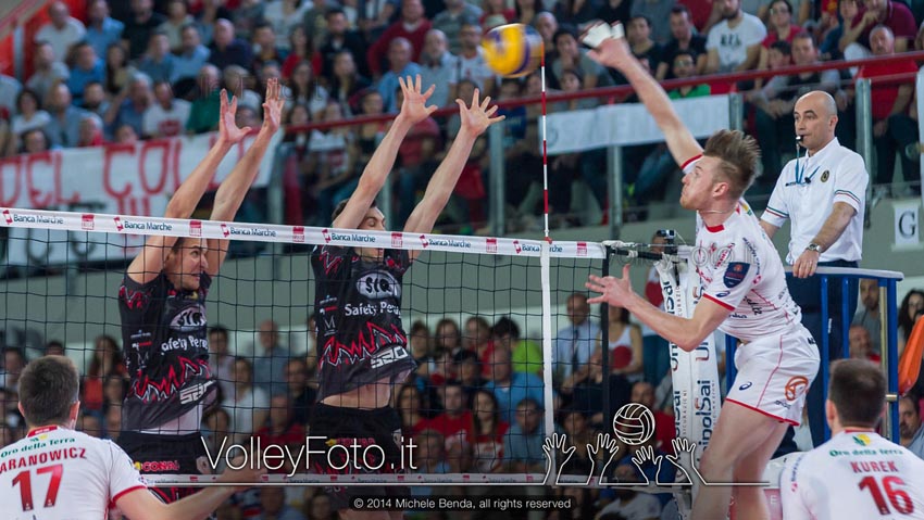 MACERATA: Zaytsev 14, Kurek 12, Podrascanin 6, Stankovic 6, Parodi 6, Baranowicz 4, Henno (L1), Kovar 4, Monopoli 1, Patriarca. N.E. – Giombini, Bulfon, Provvisiero (L2). All. Alberto Giuliani e Francesco Cadeddu.