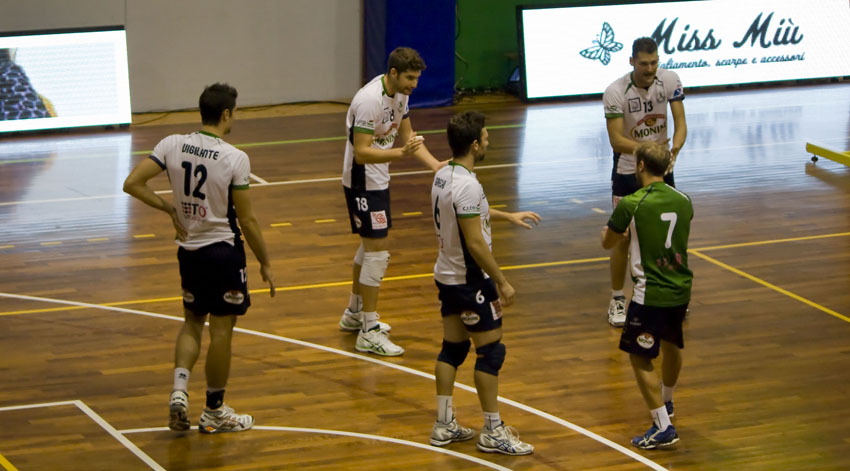 La quiete prima della tempesta. La Monini Spoleto, dopo la grande vittoria di mercoledì in casa dell’Arvalia Roma, non si è lasciata distrarre dai festeggiamenti dei propri tifosi (presenti alla trasferta in gran numero) entusiasti per il passaggio del turno. Giovedì è tornata a lavorare intensamente in vista della prima gara della finale play-off di serie B2 maschile, in programma sabato alle ore 21 in casa della Emma Villas Chiusi. Gli oleari, dimostrando grande tenacia ed attaccamento alla maglia, nella partita tenutasi nella capitale nonostante un avvio tutto in salita non si sono mai arresi e con il passare dei minuti hanno saputo rialzarsi, imporre il proprio ritmo e alla fine conquistare un risultato storico, a lungo sognato durante la fase regolare della stagione. La formazione di Provvedi, però, non vuole fermarsi qui e in questi due giorni si è allenata per recuperare le energie e arrivare pronta alla gara dell’anno, l’ultima di una lunga serie di battaglie con Chiusi che hanno avuto luogo nei mesi scorsi. Il percorso degli oleari, infatti, ha iniziato ad incrociare quello dei padroni di casa già a settembre in coppa Italia, ad uscire vincitori nei due scontri furono i toscani ma all’epoca gli oleari erano tutt’altra squadra, ancora privi del palleggiatore Torre che con il suo arrivo ha garantito solidità all’intera formazione e passaggi precisi a beneficio dell’opposto Vigilante, degli schiacciatori Lattanzi e Segoni e dei centrali Battistelli e Ceccarelli. Dopo quegli incontri, la squadra biancoverde cresciuta e nell’arco del campionato ha dato vita ad altre due sfide accese e sempre emozionanti con Chiusi, che dopo la sconfitta rimediata al Pala-Rota ha saputo rifarsi nella gara di ritorno. Sarà quindi un confronto molto equilibrato, anche se i favori del pronostico sono tutti in favore della rivale, che ha concluso al secondo posto la stagione regolare prima di estromettere dalla corsa verso la promozione la Marino Pallavolo, battuta agevolmente in due gare senza storia. «Stiamo attraversando un buon momento – ha spiegato alla vigilia il tecnico Riccardo Provvedi – e siamo riusciti a raggiungere la finale contro tutti i pronostici. La mia squadra è conscia della propria forza ed è pronta per nuove battaglie. Ovviamente Chiusi si è guadagnata il ruolo di favorita arrivando seconda, potrà contare sul fattore campo ed inoltre in questa settimana ha potuto allenarsi con regolarità mentre noi siamo reduci dalla gara di mercoledì, che è stata molto combattuta. In ogni caso le finali sono sempre aperte a qualsiasi pronostico e scenderemo in campo per lottare e conquistare la promozione. Siamo usciti da situazioni complicate nel corso della stagione e ora combatteremo fino alla fine. Saranno delle partite bellissime sia da giocare che da guardare sugli spalti».