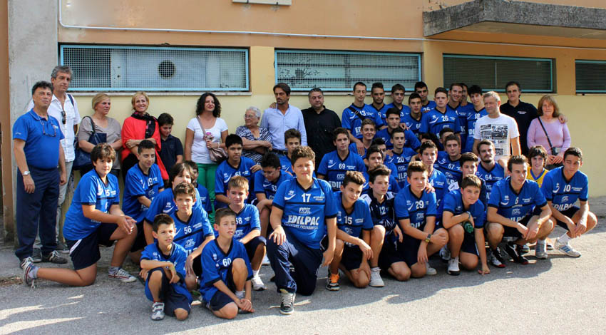 foto di gruppo per il settore giovanile della Inter Volley Foligno all’esterno della palestra Fausto Ciccioli