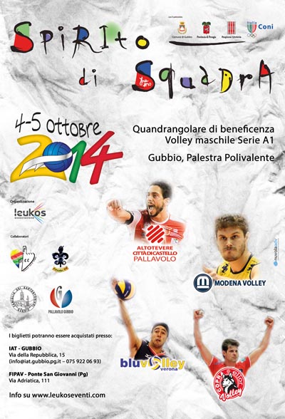 Dopo l’ottimo esordio dello scorso anno torna l’appuntamento con Spirito di Squadra, il connubio tra pallavolo di altissima qualità (serie A1 maschile) e solidarietà, dedicato alla memoria di Francesco Rampini, giovane pallavolista eugubino, scomparso nel settembre del 2012. Come nella prima edizione (che ha registrato il tutto esaurito), le associazioni di cui faceva parte Francesco Rampini, Leukos, Pallavolo Gubbio, Baracca Party, Circolo ’99 e Famiglia dei Santantoniari, si uniscono per regalare agli appassionati sportivi eugubini e non, un evento di caratura nazionale. Spirito di Squadra diventa infatti un torneo quadrangolare tra quattro delle migliori formazioni militanti in serie A1 maschile: Altotevere Città di Castello – Sansepolcro, Pallavolo Modena, Blu Volley Verona e Copra Elior Piacenza. Formazioni in cui militano giocatori italiani, europei e internazionali facenti parte stabilmente delle rispettive nazionali, che si affronteranno alla palestra Polivalente di Gubbio. Sport e solidarietà, un connubio vincente. Spirito di Squadra 2014 non è solo pallavolo di altissimo livello ma anche impegno, unitario e collettivo, a favore della beneficenza. Le associazioni coinvolte destineranno l’intero ricavato in beneficenza per la realizzazione di progetti mirati e ben precisi che abbiano ricadute sociali e benefiche sul territorio. Tre i progetti per l’anno corrente: realizzazione di un pozzo in Burkina Faso necessario per garantire acqua potabile ad un intero villaggio; l’associazione promotrice del progetto è L’Impegno onlus, nata nel 2007 su iniziativa del dr. Luigi Panata, attuale presidente, con lo scopo di far fronte alle necessità prioritarie ed impellenti della popolazione burkinabè, una delle più povere al mondo. Acquisto di un defibrillatore, nell’ambito del progetto ‘Gubbio città Cardio-Protetta’ promosso dall’associazione Amici del Cuore di Gubbio. Gli obiettivi che l’associazione intende raggiungere nel medio periodo sono quelli di dotare la città e l’intero territorio comunale di apparecchi defibrillatori, di mettere in rete tutti i dispositivi esistenti, nonché di formare operatori laici per un primo intervento, attraverso i corsi di primo soccorso tenuti presso l’ospedale di Branca; acquisto di strumentazione medica per gli ospiti dell’Astenotrofio Mosca di Gubbio; varie (in caso rimangano risorse oltre quelle necessarie al finanziamento dei progetti sopra descritti verranno effettuate ulteriori donazioni). I biglietti sono in vendita dallo scorso sabato 13 settembre allo Iat di Gubbio di via della Repubblica. Da mercoledì 17 settembre sono anche disponibili alla sede Fipav in via Adriatica, 111 a Ponte San Giovanni che osserva i seguenti orari di apertura: lunedì 16-20, martedì: 9–12 e 16,30-19, mercoledì 16,30-19, giovedì 9–12 e 16,30-19, sabato 9-12. I biglietti (gratis per bambini e bambine fino ad un massimo di 6 anni) saranno acquistabili in due modalità: giornaliero (che dà diritto ad assistere alle due partite del giorno), o abbonamento (che consente di assistere sia alle qualificazioni che alle finali). Giornaliero (valido per due partite) al prezzo di 15€; abbonamento (valido per le quattro partite di sabato e domenica) per la gradinata al prezzo di 20€; per la tribuna a bordo campo al prezzo di 25€. Questi gli orari dei confronti del torneo, sabato 4 ottobre alle ore 15 Città di Castello Sansepolcro contro Modena, alle ore 18 Verona contro Piacenza. Domenica 5 ottobre alle ore 15 finale per il terzo posto, alle ore 18 finale per il primo posto. È possibile avere le informazioni sull’appuntamento tramite il sito internet www.leukoseventi.com o attraverso la pagina www.facebook.com/groups/264142227117291 che fornisce tutti gli aggiornamenti, è altresì possibile collegarsi alla pagina www.facebook.com/events/714104278625795 per prenotare la maglietta dell’evento.