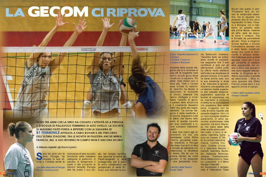 Rappresentanti umbre in evidenza sulla rivista iVolley Magazine edita dalla Fipav e pubblicata sul web attraverso il suo sito ufficiale nel canale www.ivolleymagazine.it con uscita a cadenza settimanale. Nel numero 106 uno spazio è stato dedicato alla formazione della Gecom Security Perugia di serie B1 femminile. Un approfondimento voluto dalla redazione che ha dedicato pagina 38 e 39 alla squadra che sta calamitando l’interesse dei tifosi amanti della pallavolo rosa nel capoluogo regionale. L’auspicio è che anche in futuro i lettori possano trovare tra le pagine delle iniziative visibili sul web tante altre notizie riguardanti squadre e giocatori regionali, ricordando che la comunicazione è importante per ottenere gli spazi sulle molteplici testate giornalistiche esistenti.