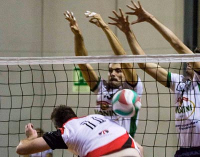 La Monini Spoleto prosegue il percorso netto nella coppa Italia di serie B2 maschile rifilando, tra le mura amiche del Pala-Rota, un rotondo tre a zero anche alla Cielo Verde Edilfox Grosseto. Ora gli oleari guidano il girone in solitaria con nove punti, in caso di vittoria sabato contro Sabaudia la qualificazione al turno successivo sarebbe praticamente certa. Con capitan Lattanzi kappao per un infortunio al dito (ne avrà per una ventina di giorni) e Ceccarelli ancora alle prese con la riabilitazione, Restani manda in campo Vanini in diagonale con Vigilante, Garofalo e Segoni in posto-quattro, Miscione e Battistelli al centro e Cavaccini nel ruolo di libero. I padroni di casa iniziano col piede sull’acceleratore. Un attacco di Miscione e un muro di Garofalo fanno il primo break dell’incontro (6-3), poi è Segoni ad allungare con un attacco seguito ad un’ottima ricezione sul missile in battuta di Gribov. Un paio di decisioni dubbie degli arbitri tengono a galla Grosseto, che però al secondo time-out tecnico scivola a meno quattro (16-12) per un fallo di invasione un ace di Garofalo. I toscani non si arrendono e si riportano a sotto (21-19), costringendo coach Restani al time-out discrezionale. Al rientro in campo gli oleari riprendono a martellare da tutte le zone di attacco e chiudono approfittando di un’altra invasione col piede dei toscani. Il primo break del secondo set è ancora di marca olearia. Miscione mette a terra un gran primo tempo alzato dietro da Vanini, poi sale in cattedra Battistelli con due muri consecutivi. Grosseto pareggia grazie ad un bell’attacco di Durante (8-8), ma il pallino del gioco rimane in mano ai padroni di casa. Vanini mette in moto i suoi schiacciatori anche da seconda linea, Vigilante martella dai nove metri e con due ace consecutivi porta i suoi al più tre (13-10). Non è questa però la fuga decisiva, perché Grosseto pareggia con tre punti consecutivi e poi gioca punto a punto fino al 19-17, quando a rompere definitivamente l’equilibrio sono due falli di invasione quasi consecutivi degli ospiti. Il punto del raddoppio arriva con un attacco che finisce fuori di Pellegrino. Nelle fasi iniziali del terzo parziale i biancoverdi provano la fuga due volte, ma in entrambe vengono raggiunti. Un muro di Garofalo e un attacco di Vigilante valgono il 7-3, che diventa 9-5 dopo un pallonetto molto scaltro dello schiacciatore cosentino e un muro implacabile di Miscione. Un buon turno al servizio di Pellegrino riporta a contatto gli ospiti (11-10), ma sono ancora gli spoletini a guidare il gioco con un tocco di seconda di Vanini, un attacco di Segoni, un muro di Garofalo e una ‘bomba’ di Vigilante. 16-12 al secondo time-out tecnico, ma non è ancora la fuga decisiva. Coach Pantalei inserisce il secondo opposto Pedrini, che mette in crisi la ricezione biancoverde con una battuta flot piedi a terra. Grosseto impatta a quota 19 e poi si porta addirittura in vantaggio. La Monini dal canto suo è brava a non disunirsi. Vigilante diventa immarcabile e tiene i suoi sempre a contatto, riportandoli in parità (24-24) dopo una palla tenuta viva in difesa da un attento Battistelli. La Monini non ci sta a concedere un set agli avversari e infatti di li a poco arrivano i titoli di coda. È Miscione, con un muro stampato sui tre metri, a chiudere la pratica ai vantaggi. Visibilmente soddisfatto coach Paolo Restani a fine match: «È andata bene, siamo stati bravi a non disunirci nei momenti decisivi. Ho visto un piccolo calo di tensione nella fase centrale del terzo set ma, come era già capitato contro Roma, ho visto una bella voglia di reagire da parte della squadra». Si tornerà in campo tra soli tre giorni, sempre al Pala-Rota, contro Sabaudia. Dopo la partita spazio alla grande festa del club, con la presentazione di tutte le squadre giovanili, sia maschili che femminili, delle due serie C e della B2. Una grande serata di sport e amicizia pensata per tutti i tifosi e gli appassionati di volley.