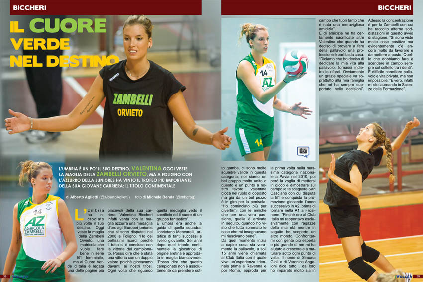 Ancora una presenza umbra sulla rivista iVolley Magazine edita dalla Fipav e pubblicata sul web attraverso il suo sito ufficiale nel canale www.ivolleymagazine.it con uscita a cadenza settimanale. Nel numero 109 del sempre più letto periodico di pallavolo uno spazio è stato dedicato a Valentina Biccheri atleta aretina approdata in questa stagione alla Zambelli Orvieto di serie B1 femminile. Un approfondimento che la redazione ha voluto dedicando pagina 38 e 39 alla opposta biancoverde che protagonista sotto la Rupe. L’auspicio è che anche in futuro i lettori possano trovare tra le pagine delle iniziative visibili sul web tante altre notizie riguardanti squadre e giocatori regionali, ricordando che la comunicazione è importante per ottenere gli spazi sulle molteplici testate giornalistiche esistenti.