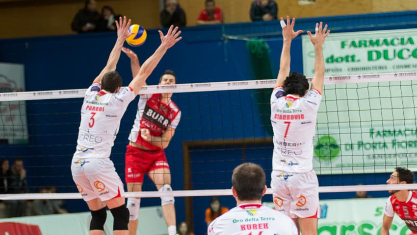 Che peccato! Altotevere Città di Castello – Sansepolcro costringe ad un superlavoro la Cucine Lube Banca Marche Treia che vince sì tre a zero ma va ai vantaggi in due parziali ed annulla anche due palle-set ai ragazzi di Polidori, bravi e coriacei a crederci fino all’ultimo e a non arrendersi. La squadra ha lottato, è stata applaudita dal pubblico e ha tentato di opporsi in tutti i modi ai campioni d’Italia. Le due squadre partono con i sestetti annunciati e titolari di questa fase della stagione: Polidori recupera in pieno Della Lunga e Maric, dopo l’influenza delle scorse settimane, ed anche coach Giuliani mette in campo i suoi migliori. L’opposto serbo biancorosso va subito a segno (1-0), Treia passa con la palla out di Randazzo e il muro su Mazzone (1-3). Kurek va a segno da zona quattro (1-4, time out Polidori), ancora Maric risponde per il 4-6 ma la battuta dell’Altotevere non riesce a mettere in difficoltà la ricezione marchigiana (6-8). Maric è il più ispirato e mura a uno Parodi (7-8) poi Randazzo scardina Kurek dal servizio e pareggia i conti (10-10). La palla out di Mazzone manda le due squadre alla sosta sul 10-12, Parodi fa lo stesso per il 13-13 (time out Giuliani). Ace di Stankovic, con l’aiuto del nastro, e nuovo doppio vantaggio ospite (13-15), pareggiato ancora dal muro di Randazzo su Sabbi (15-15). Lube ancora avanti di due col muro di capitan Podrascanin (15-17), errore di Sabbi da seconda linea (17-17). Giuliani effettua il doppio cambio, Monopoli-Fei per Sabbi-Baranowicz, Polidori getta nella mischia Kaszap per alzare il muro ma Treia scappa di nuovo (18-20). Dopo una palla in rete di Sabbi (21-21), Giuliani chiama time out arrabbiatissimo. Treia sbaglia in ricezione su Della Lunga e Randazzo è il più lesto sottorete (24-23), Della Lunga poi mette out di poco il servizio (24-24). Sabbi ribalta il vantaggio dalla zona uno (24-25), Podrascanin mette in rete il 26-26 senza muro.  Chiude Kurek, rapido sotto rete, un set in cui l’Altotevere ha espresso gioco e grinta ma fallito troppo al servizio (otto errori). C’è equilibrio anche nelle prime fasi del terzo set (3-3) e grandi salvataggi sottorete da parte di entrambe le squadre (7-7). Fiammata dell’Altotevere con Randazzo che ferma Sabbi e Maric che scardina il muro ospite per il 10-8, rispondono Sabbi e Baranowicz dal servizio (10-11). Alla sosta tecnica la Lube è avanti di due (10-12, muro di Kurek). Il polacco è scatenato anche dalla zona di battuta (11-15, time out Polidori) , Mazzone mura Parodi e riporta a meno due i suoi  (13-15). Treia continua a condurre (16-18) ma subisce l’ace di Corvetta poco dopo l’ingresso in campo di Shumov al posto di Podrascanin (17-18, time out Giuliani). I ragazzi di Polidori sono encomiabili per impegno e volontà ma sono ancora un po’ fallosi al servizio (19-21). Il muro di Stankovic su Randazzo porta ad un nuovo time out di Polidori (19-23). Baranowicz mette in rete il primo set point (20-24), Randazzo annulla ancora (21-24), Sabbi spara sul muro biancorosso la palla dello 0-2.   Nel frangente sette i punti di Kurek e Randazzo, rispettivamente col 71% e 75%. Nel terzo periodo Giuliani rimanda in campo Podrascanin, primo break ospite con lo slash di Kurek (1-3). Un altro errore, questa volta di Aganits lancia la Lube a più 3 (4-7), Polidori chiama time out sul 5-8 per non far scappare ulteriormente i campioni d’Italia ed anche perché ha visto qualche sbavatura di troppo. Randazzo continua a martellare (quindici punti), Della Lunga mette fuori il 9-12 mentre Sabbi cade sottorete e viene chiamato a gran voce dal pubblico locale (cose da volley!). Altotevere rimane sotto di due (11-13, out Sabbi al servizio), Aganits sigla due ace di fila e costringe Giuliani al time out (14-14). Un muro di Stankovic, con Kurek il migliore dei cucinieri, riallontana ancora l’Altotevere (16-17) che comunque non è doma anche se non riesce a pareggiare i conti (18-20), complici gli errori al servizio. Giuliani alza il muro col doppio cambio che serve ad impedire l’aggancio biancorosso (20-22, muro di Podrascanin su Randazzo). Dopo il time out di Giuliani, Randazzo ferma Kurek (22-22) e dà fiato alle speranze di un’Altotevere che è comunque applaudita da tutto il palasport. Della Lunga guadagna il 24-23, Randazzo mette out però il servizio (24-24). Kovar, appena entrato, mette a segno il 24-25, Della Lunga pareggia (25-25). Parodi chiude un’azione interminabile che strappa applausi a tutto il pubblico (25-26), ancora Della Lunga non vuole alzare bandiera bianca (26-26). Sabbi spara out il servizio (27-27), Randazzo mette out e regala il successo ai marchigiani.