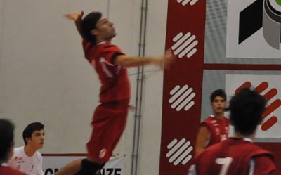 lo schiacciatore Filippo Agostini in attacco